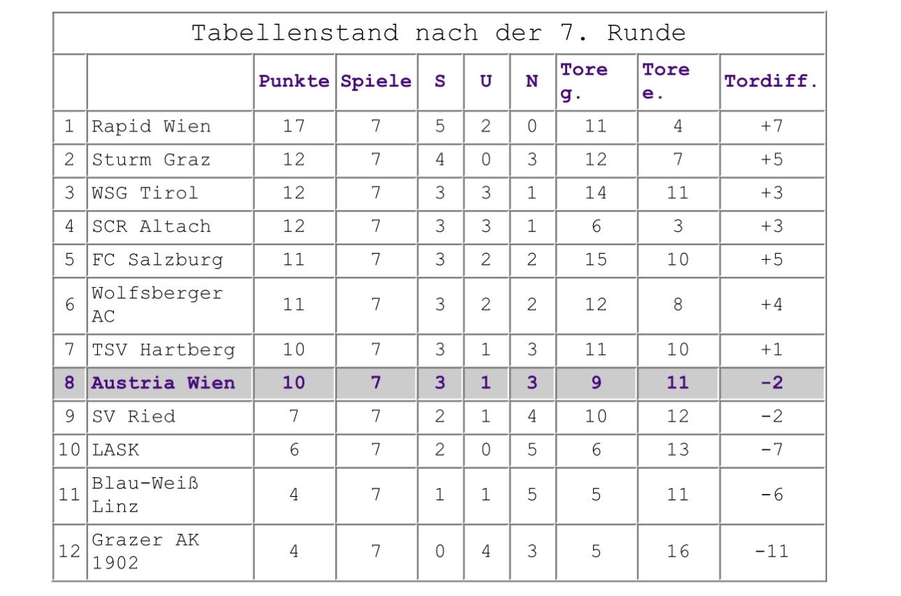 Fredix ASB-Süchtige(r) Geschrieben vor 6 Stunden pramm1ff schrieb vor 12 Stunden: Schwelle aktuell bei hochgerechnet 31 Punkten. Austria Wien aktuell bereits bei 32 Punkten. Das geben wir nicht mehr her und es ist nicht einmal sicher, ob wir überhaupt noch Punkte für das OPO bräuchten. Wir brauchen noch 3 Punkte aus den letzten 3 Spielen um fix am OPO teilzunehmen, denn wir liegen 6 Punkte vor Rapid und haben die direkten Duelle gewonnen. Der WAC und Altach liegen 7 Punkte hinter uns und die WSG 8. Wenn in der kommenden Runde Rapid gegen Wolfsberg unentschieden ausgeht und Ried in Tirol nicht verliert, sollte uns auch ein Unentschieden in Altach genügen. Eine Woche später gegen den LASK wäre ein Sieg auch in Hinblick auf die direkten Duelle bei Punktegleichstand wichtig, denn das Hinspiel in Linz haben wir verloren. Am letzten Spieltag in Ried möchte ich nicht auf einen Sieg gegen einen womöglich direkten Konkurrenten um den letzten Platz im OPO angewiesen sein, denn die Trauben hängen in Ried ja bekanntlich sehr hoch und heuer anscheinend noch ein bisschen höher. Daher bitte gleich am kommenden Spieltag in Altach nachlegen und gewinnen und am besten natürlich alle verbleibenden Spiele gewinnen, denn: zico74 schrieb vor 8 Stunden: Gatrik schrieb vor 8 Stunden: I darat trotzdem no gern ALLE Punkte mitnehmen 0 Zitieren Diesen Beitrag teilen Link zum Beitrag Auf anderen Seiten teilen More sharing options...