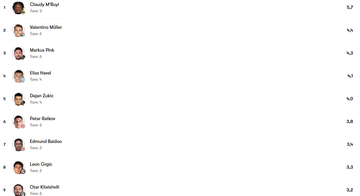 Fixabsteiger Knows how to post... Geschrieben vor 2 Stunden Stehplatzschwein schrieb vor 2 Minuten: Wenn es unter 10% ist dann ists für die Diskussion grade völlig unbrauchbar. Was willst mit so einer kleinen Abweichung zeigen bei a) so kleiner Samplesize und b) wenn Mbuyi bei 3 statt bei 6 Toren steht? Selbst wenns so wäre wär das hier unerheblich. Es geht darum, dass hier u.a. Mbuyi für seine Abschlüsse kritisiert wurde. Die 5 führenden der Torschützenliste mit je 5-6 Toren haben alle xGoT-Werte zwischen 2,71 und 4,37 - also weit unter Mbuyi. Wie wertest du jetzt nach deinen Maßstäben diese Leistungen? Wo bekommt ihr eigentlich alle die Stats her? 0 Zitieren Diesen Beitrag teilen Link zum Beitrag Auf anderen Seiten teilen More sharing options...