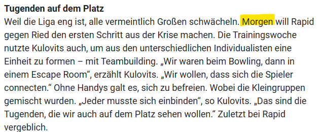 bw_sektionsbg ASB-Legende Geschrieben vor 1 Stunde Caspar01 schrieb vor 31 Minuten: Ich glaube dem Vogel auch kein Wort mehr. schade. Und Rapid spielt am Freitag gegen Ried? Abendausgabe mein Freund. Der Artikel steht morgen Freitag in der Print, daher passt es. 0 Zitieren Diesen Beitrag teilen Link zum Beitrag Auf anderen Seiten teilen More sharing options...