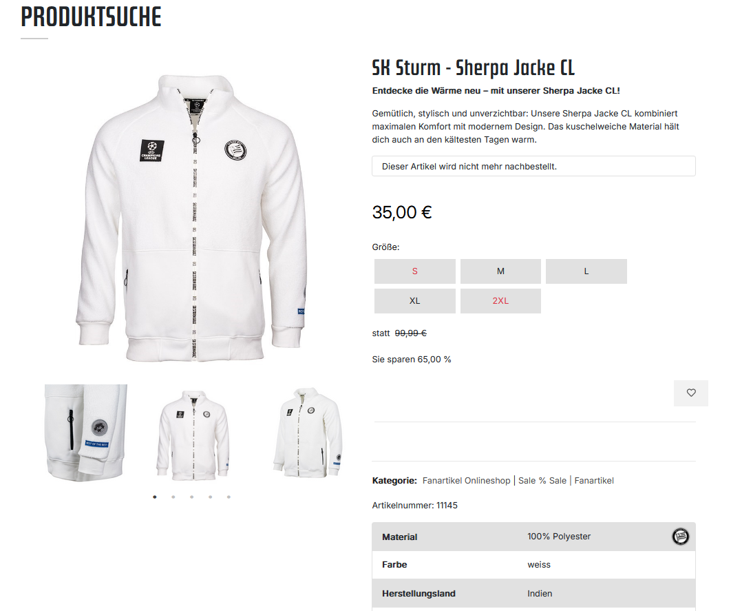 sent96 Posting-Maschine Geschrieben vor 4 Stunden markymushroom schrieb vor 39 Minuten: Da steht aber 100% baumwolle? wo? ^^ https://shop.sksturm.at/sturm-graz-shop/Model/data/Suchen/ca722857-a502-423e-920d-bce111ac3535 1 Zitieren Diesen Beitrag teilen Link zum Beitrag Auf anderen Seiten teilen More sharing options...