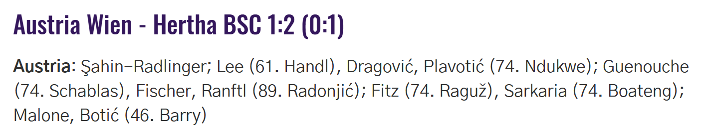 Raguz hatte 84 Testspielminuten in den zwei relevanten Testspielen, Aleksa 60, Boateng 76, Sarkaria und Fitz je 134... und so weiter... Saljic hatte NULL.