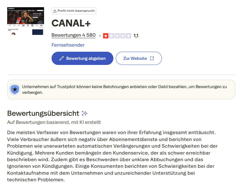 MarvinTheRobot Postaholic Geschrieben Donnerstag um 09:07 (bearbeitet) Wenns um Kundenfreundlichkeit und -service bei Canal+ geht, haben die definitiv ein "C" zuviel.... bearbeitet Donnerstag um 09:08 von MarvinTheRobot 0 Zitieren Diesen Beitrag teilen Link zum Beitrag Auf anderen Seiten teilen More sharing options...