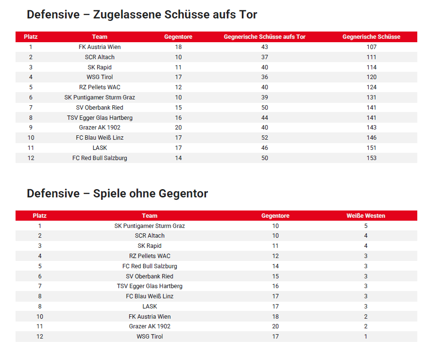 Torberg*1911 Im ASB-Olymp Geschrieben Dienstag um 10:34 violalaola schrieb vor 2 Stunden: Wir lassen in der Hinrunde die wenigsten gegnerischen Schüsse zu und kassieren die zweitmeisten Gegentore? Wir bekommen 43 Schüsse aufs Tor und kassieren 18 Tore (41%)? Zum Vergleich z.B. Sturm hat 39 Schüsse aufs Tor bekommen und nur 10 Gegentore am Konto (25%). Da sieht man was ein guter Torwart ausmachen kann. Die TW-Position ist unsere größte Baustelle im Team. Hier muss der neue Sportvorstand wenn möglich schon im Winter handeln. Es wird doch eine Leihe möglich sein, von einem Torwart der mit seiner Einsatzzeit nicht zufrieden ist. Schlechter als Radlinger geht eh nicht. Ich bin auch der Meinung, dass SSR ein guter Tormann am Sonntag einen der drei Gegentreffer hätte verhindern können (nicht müssen) 1 Zitieren Diesen Beitrag teilen Link zum Beitrag Auf anderen Seiten teilen More sharing options...