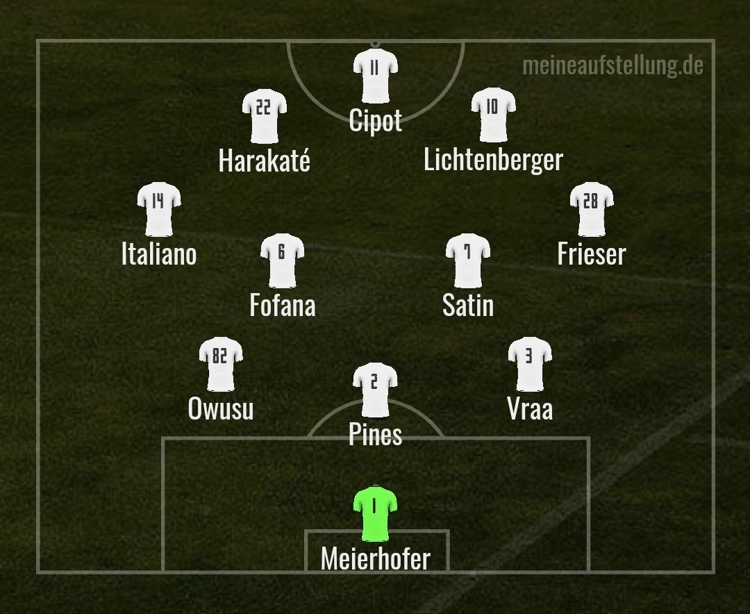 Entweder du spielst mit Cipot und Harakate und Lichtenberger als 10er, oder Maderner, Hofleitner und dahinter Cipot.