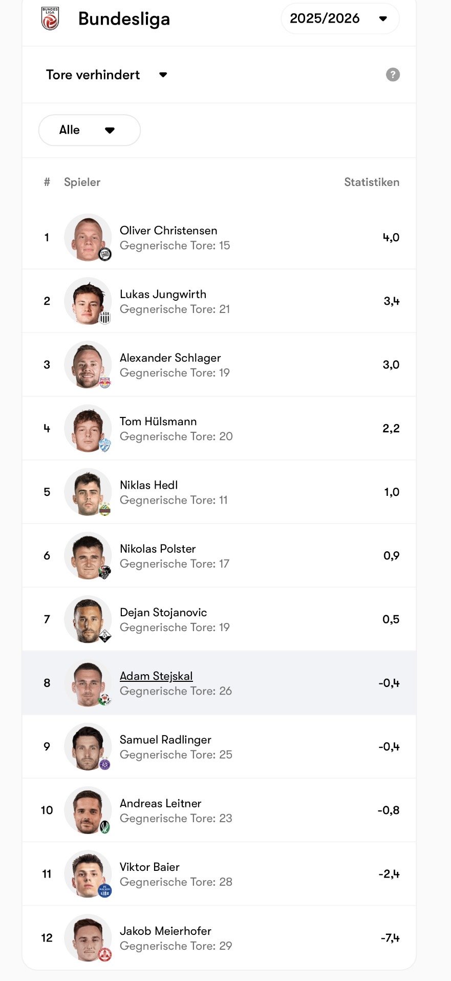 1 9 0 2 Graz ASB-Halbgott Geschrieben vor 4 Stunden seit1902 schrieb vor 3 Stunden: Schon heftig, mit welchem Abstand JM der schlechteste Torwart der Liga ist. Woher kommt die Statistik bzw Tabelle? Kannst du bitte einen Link dazu hängen? 4 Zitieren Diesen Beitrag teilen Link zum Beitrag Auf anderen Seiten teilen More sharing options...