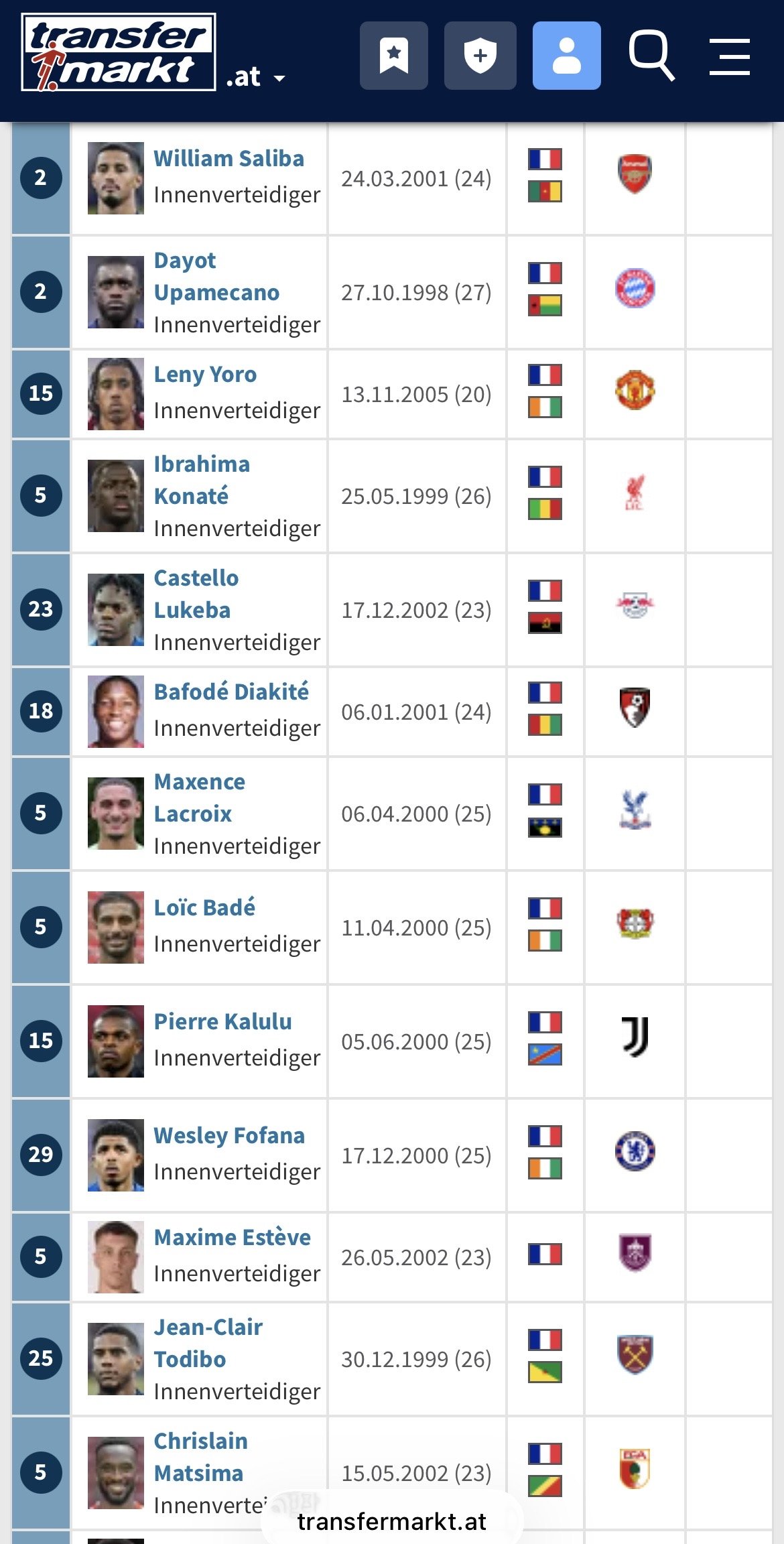 Die Wahrscheinlichkeit, dass Owusu mit dem französischen Nationalteam zur WM fährt liegt nach meiner Einschätzung bei 0,01%. Hier eine Liste an französischen Innenverteidigern, die aktuell aktiv sind. Da kann man nochmal so viele auflisten, die alle Owusu zumindest ebenbürtig sind..