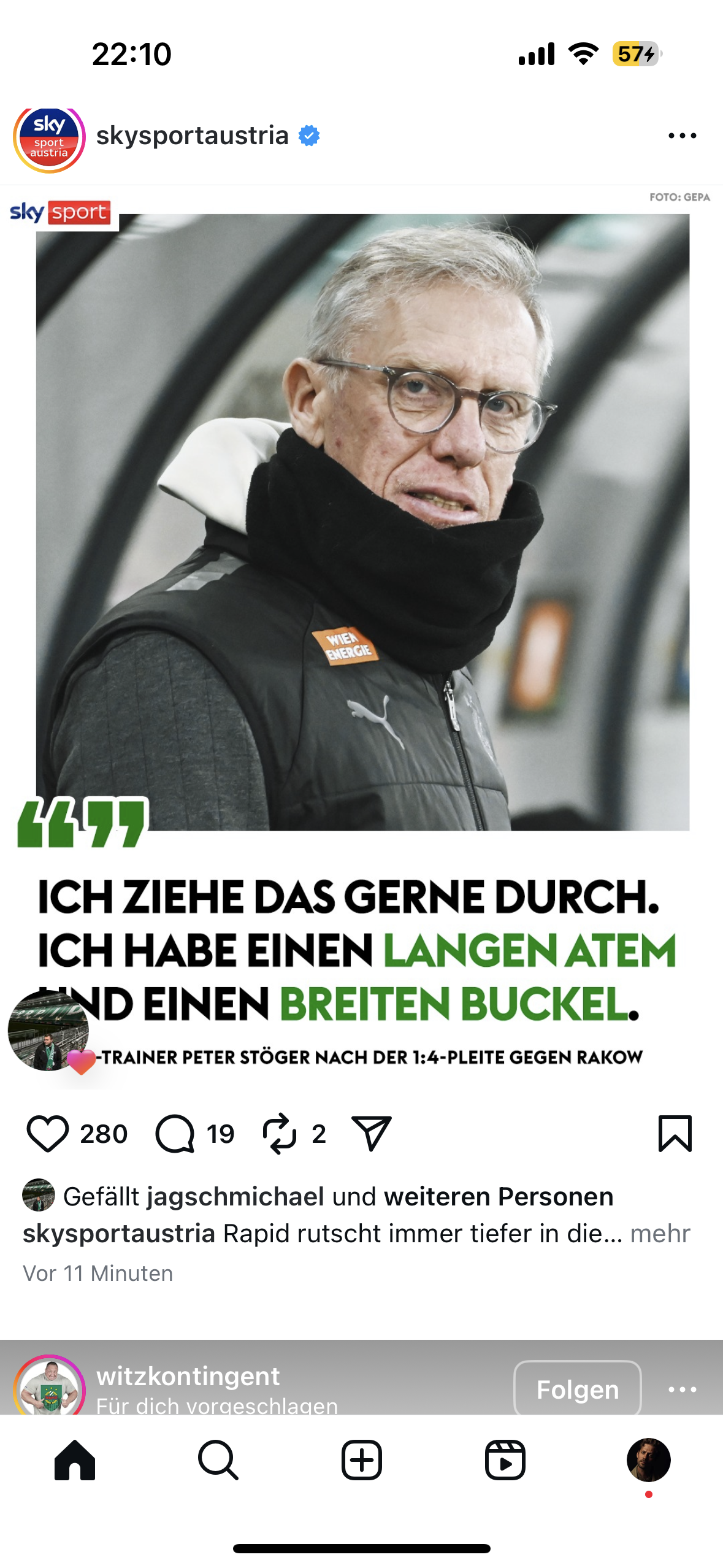 gloggi99 Im ASB-Olymp Geschrieben vor 3 Stunden Stöger wird auch gegen den Lask auf der Bank sitzen. Sollte es wieder zu einer Blamage kommen wird Stöger nicht mehr zu halten sein. Ich denke dann wird wieder ein Piefke Trainer oder einer aus der Kategorie Schopp Scheiblehner kommen. 2 Zitieren Diesen Beitrag teilen Link zum Beitrag Auf anderen Seiten teilen More sharing options...