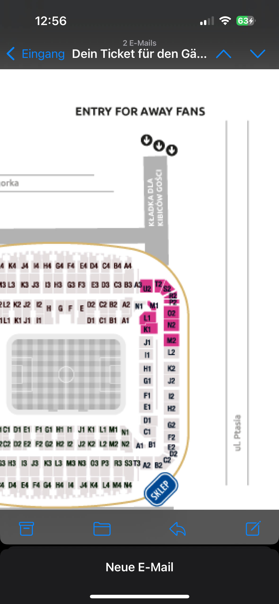 Ich hab für Posen Sektor M2, also sind wir zum Glück nicht ganz im Eck des Auswärtssektors eingepfercht.