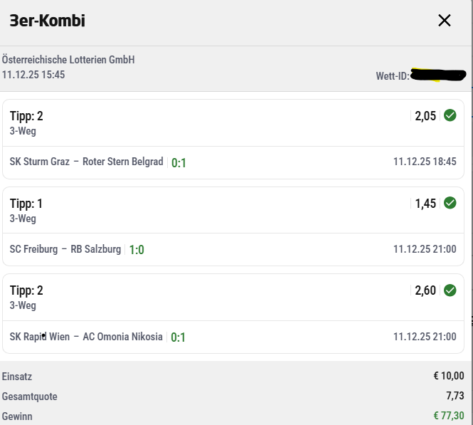 Billie Ginger Elvis Geschrieben vor 2 Stunden Wann gab‘s das eigentlich zuletzt, dass kein einziger österreichischer Verein aus einer EC-Gruppen- bzw. Ligaphase aufsteigt? 1 Zitieren Diesen Beitrag teilen Link zum Beitrag Auf anderen Seiten teilen More sharing options...