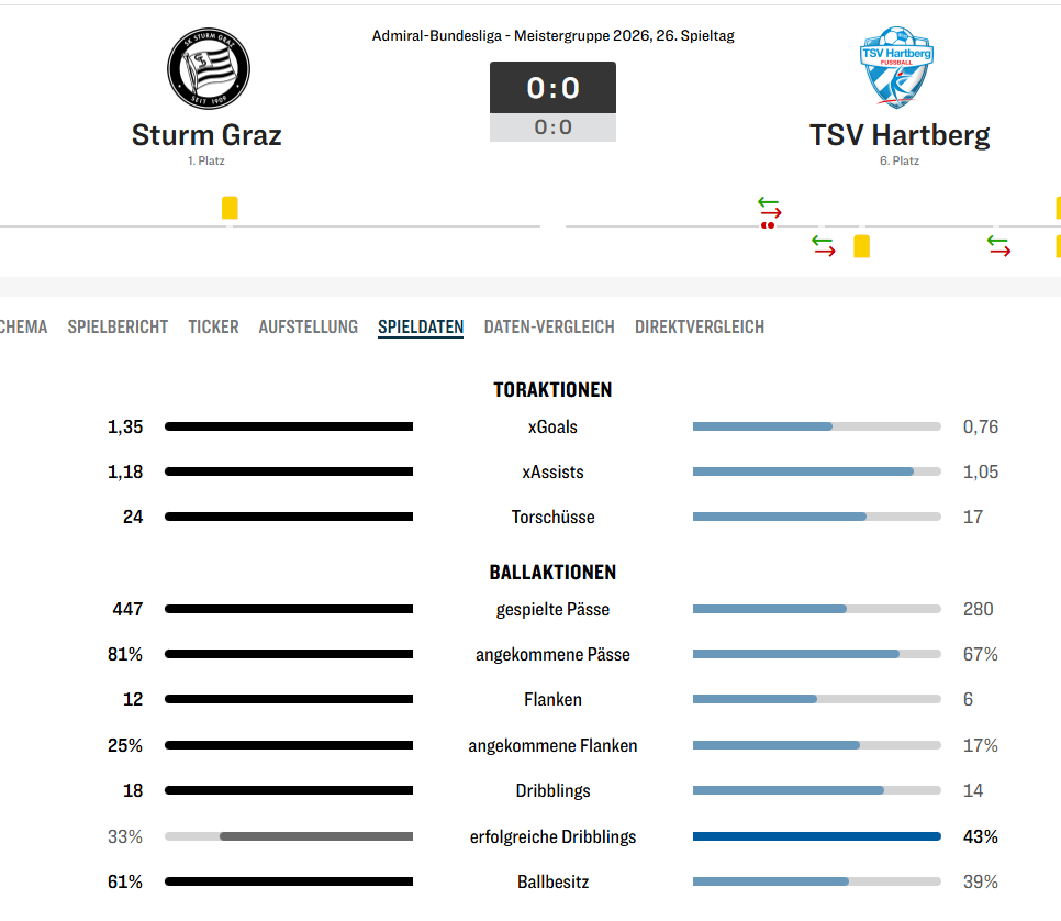 Exilsteirer Bunter Hund im ASB Geschrieben vor 8 Stunden Vöslauer schrieb vor 38 Minuten: Ich finde schon, dass der LASK (wenn man diesen spezifischen Vergleich hernimmt, der allerdings heute überhaupt nicht aussagekräftig ist) wesentlich besser performt hat. Im Gegensatz zu uns, auch zu deutlich mehr als auch besseren Torchancen kommt. Was man aber schon festhalten kann: Weder mit 2 Siegen, noch mit 2 Niederlagen ist in dieser Liga irgendetwas entschieden. Glück/Zufall wird ein entscheidender Faktor sein. . Danke fürs Ausgraben der Statistiken! Zahlen lügen nicht - Ich geb zu, hab das LASK - Hartberg Spiel ausgeglichener in Erinnerung... Leckerbissen war's aber wirklich nicht... zumindest der Teil war dann vergleichbar. Am spannendsten wär für mich: Sollte der LASK tatsächlich irgendwann vorne sein, müssen die Linzer auch erst mit der Situation umgehen, den Druck dann aushalten. Ehrlich, ich glaub auch, dass das heute bei uns reingespielt hat. Im Stadion heute, hat gefühlt jeder 2te gesagt, wir müssen gewinnen und wie wichtig der Polster wäre, wenn wir Meister werden wollen. 23/24 haben wir das souverän gelöst, das war mental ein Wahnsinn... 24/25 hat es eigentlich kein Team zusammengebracht, am stärksten war immer grad der, der vorher abgeschrieben wurde... 25/26 bleibt die Frage noch offen. Ich glaub, ich lehn mich nicht weit aus dem Fenster, wenn ich sage, dass die stärkste Mannschaft im Kopf vorne sein wird. Von dem her hoffe ich einfach, jetzt bleiben alle ruhig. Gegen den LASK werden das 2 geile Spiele und Möglichkeiten für die Spieler und die Coaches zu zeigen wer und was wir sind. Der Rest soll raus dem Kopf. 1 Zitieren Diesen Beitrag teilen Link zum Beitrag Auf anderen Seiten teilen More sharing options...