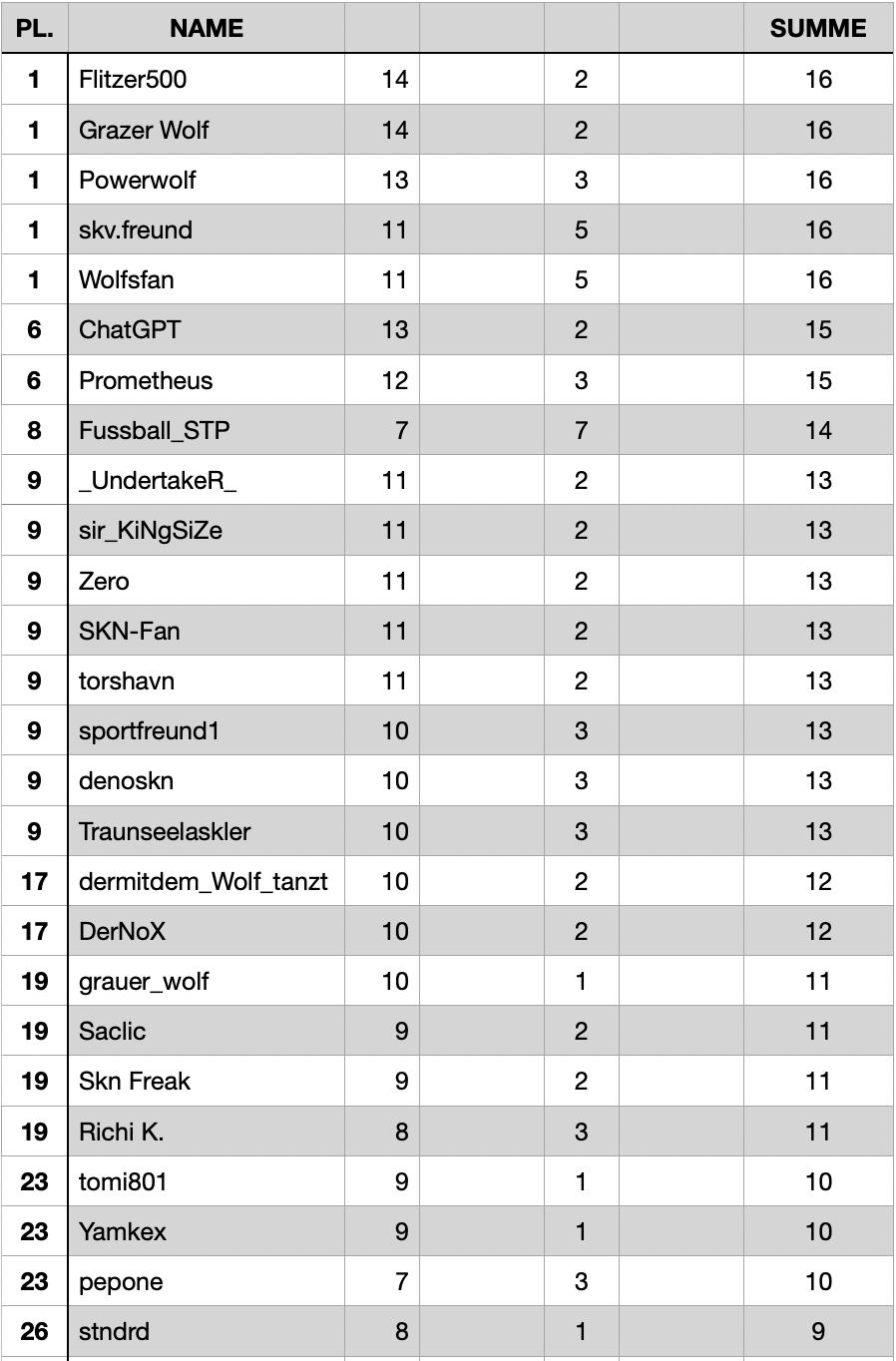 Grazer Wolf Wahnsinniger Poster Geschrieben 29. August Vienna - Lustenau 1 Klagenfurt - Admira 2 Rapid II - SKN 2 Salzburg - Amstetten 2 Stripfing - Kapfenberg 1 ChatGPT Vienna - Lustenau 1 Klagenfurt - Admira X Rapid II - SKN 2 Salzburg - Amstetten 1 Stripfing - Kapfenberg 2 0 Zitieren Diesen Beitrag teilen Link zum Beitrag Auf anderen Seiten teilen More sharing options...