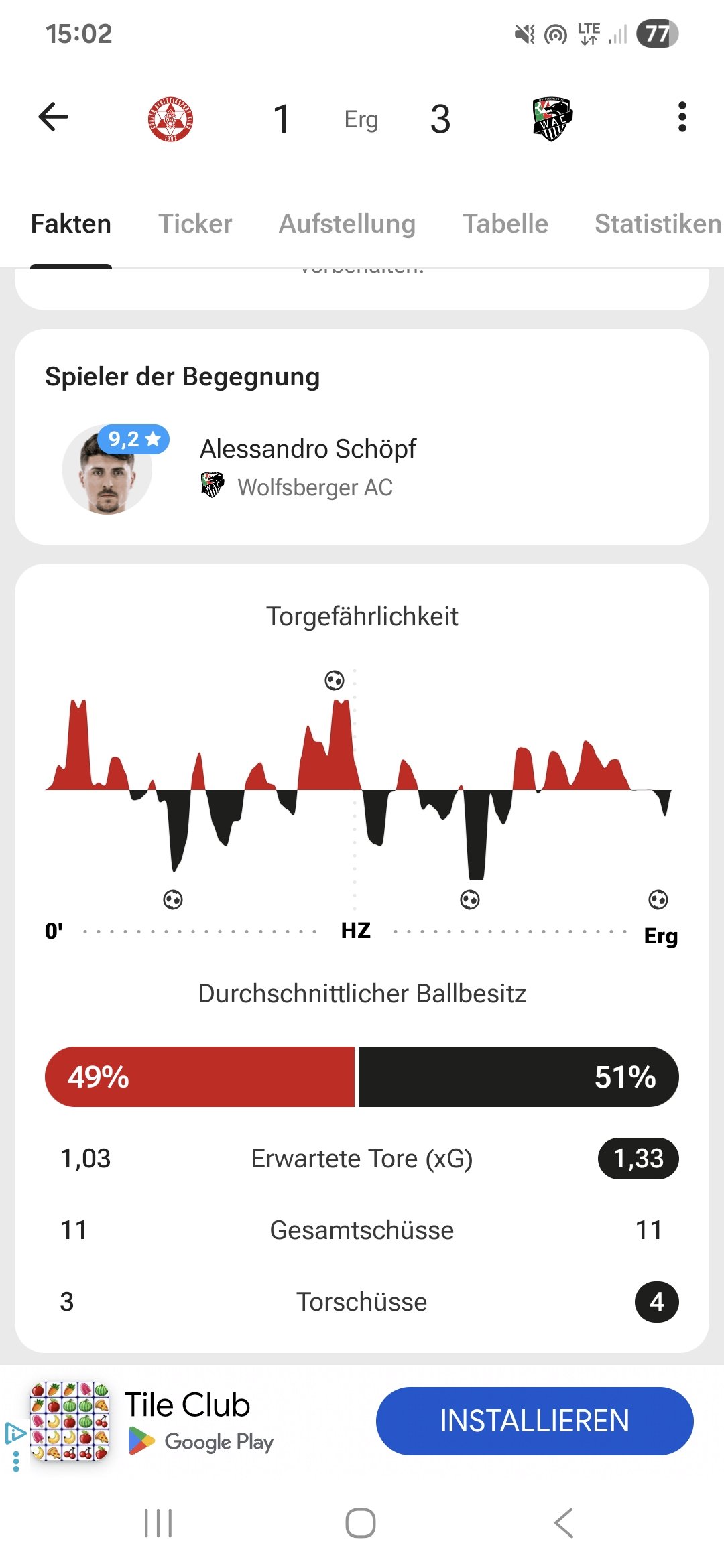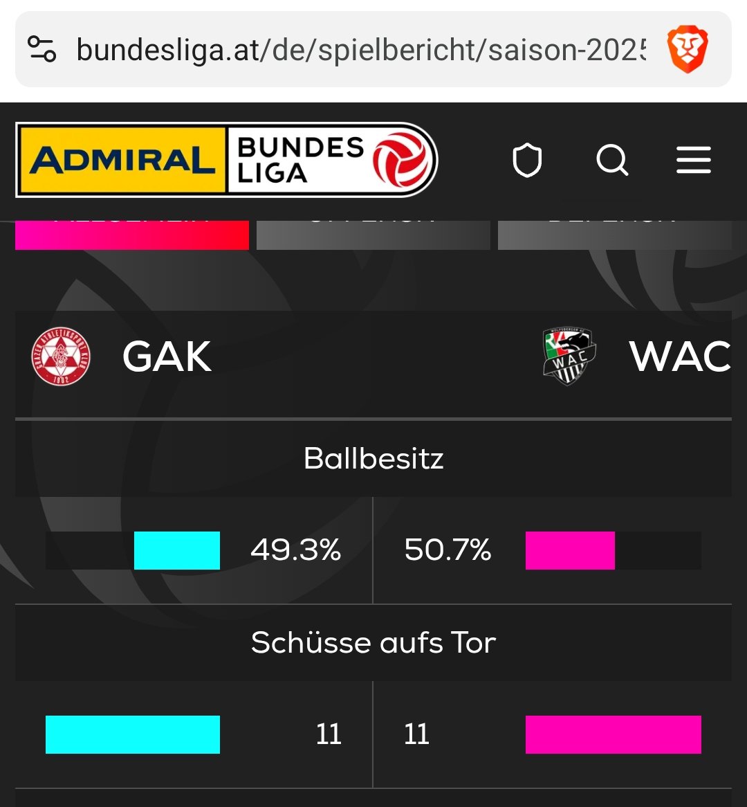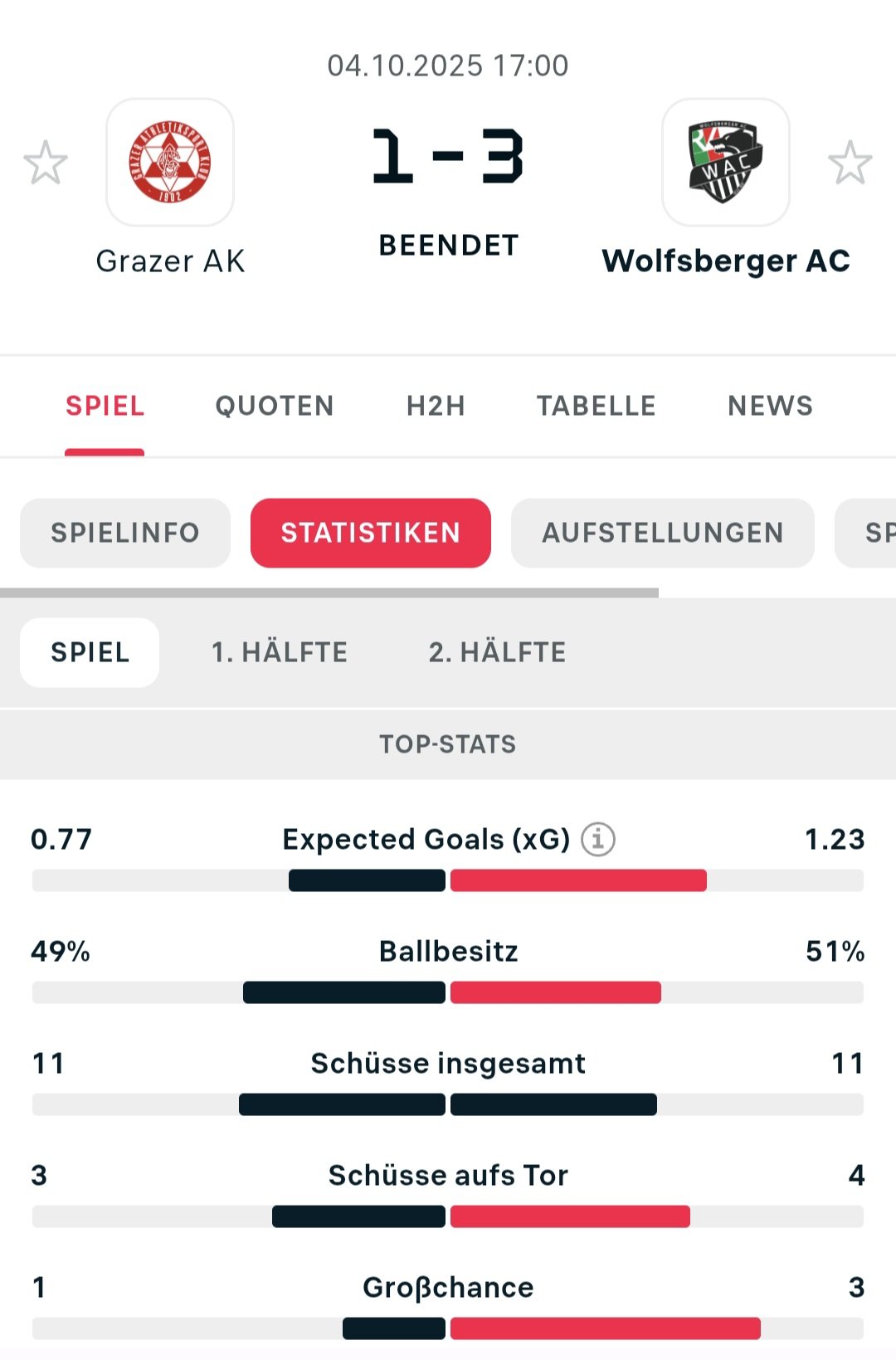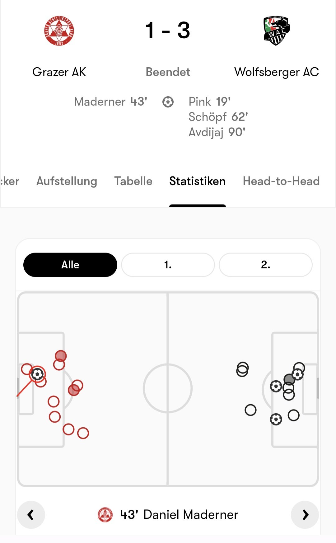 redrum Posting-Maschine Geschrieben 5. Oktober doncerebro schrieb vor 15 Minuten: Es waren 3 Schüsse aufs Tor: Maderner 43. Satin 52. Jano 77. https://www.fotmob.com/de/matches/wolfsberger-ac-vs-grazer-ak/16mnb7#4832223:tab=stats Hab's geändert - weiß schon was ich nie mehr Frage 2 Zitieren Diesen Beitrag teilen Link zum Beitrag Auf anderen Seiten teilen More sharing options...