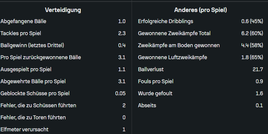 Diese Statistik bekommt Pazourek auch hin, vielleicht macht er keine 2 Tore - aber das ist auch nicht die primäre Aufgabe vom AV.  Für mich einfach nicht nachvollziehbar, wie man sich wünschen kann, dass eine Spieler wie Ranftl der wirklich viel Geld verdient bei uns, mit diesen Statistiken verlängert werden soll.