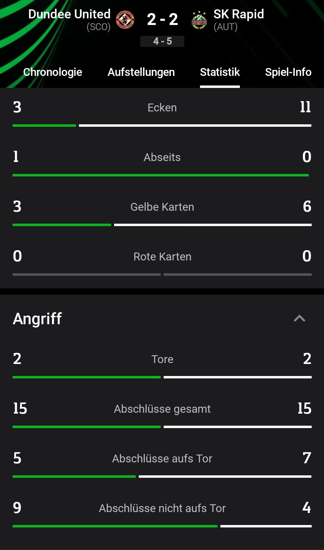 rapidwien21 Workaholic Geschrieben 15. August flonaldinho10 schrieb vor 2 Minuten: Laut UEFA-Spielbericht nicht (mehr) Ich glaub, da wurde zwischendruch mal Blödsinn eingetragen. Kurz nach dem Spiel stand eine Gelbe für Gartler und sogar eine Gelb-Rote für Radulovic drin. War zwar nicht im Bild, glaube aber schon dass da unsere die Dundee Fans ein bissl provoziert haben. 0 Zitieren Diesen Beitrag teilen Link zum Beitrag Auf anderen Seiten teilen More sharing options...