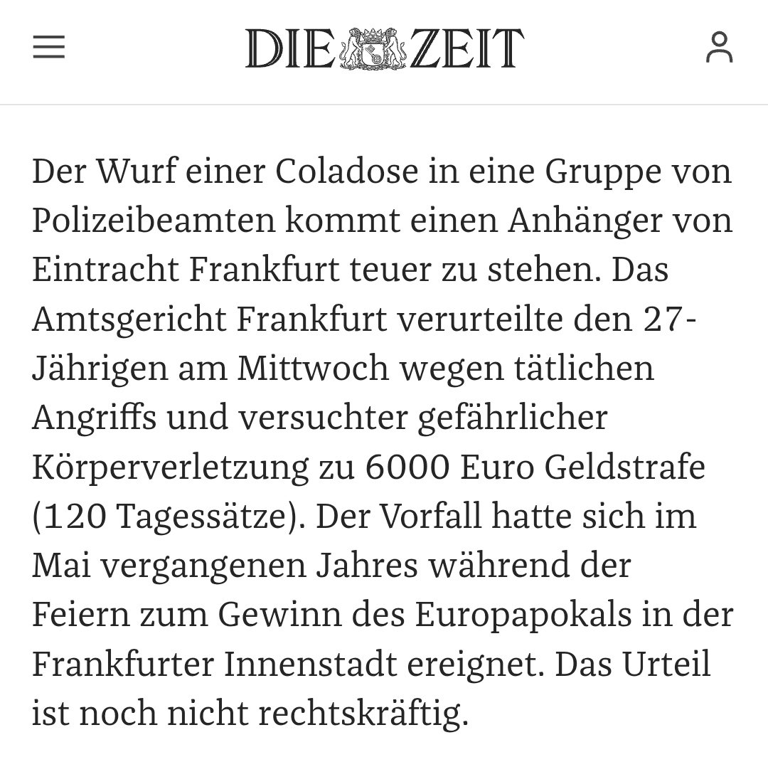 Sohnemann SINE METU Geschrieben vor 4 Stunden SturmUndDrang schrieb vor 1 Minute: Aber war der Sturmfan vorbestraft oder auf Bewährung? Laut Bericht ist der Hauptangeklagte einschlägig vorbestraft. 2 Zitieren Diesen Beitrag teilen Link zum Beitrag Auf anderen Seiten teilen More sharing options...