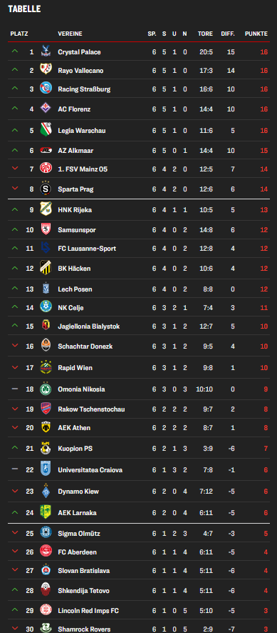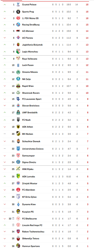 LVT1993 Wahnsinniger Poster Geschrieben Montag um 23:30 1 hour ago, XxKakaduxX said: Meine Endtabelle Damit würden wir noch in einer Zwischenrunde gegen AEK Athen ran. 1/8 Finale dann gegen Mainz 1/4 Finale gegen Legia 1/2 Crystal Palace - Endstation Ich hab mal mitgemacht. W gegen Samsun im PO L gegen Alkmaar im 1/8-Finale 1 Zitieren Diesen Beitrag teilen Link zum Beitrag Auf anderen Seiten teilen More sharing options...