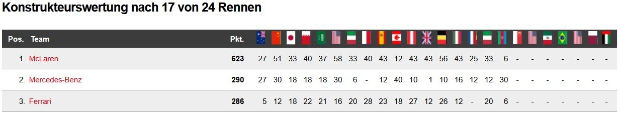 LiamG V.I.P. Geschrieben 1. Oktober STRECKE WM-STAND ZEITEN Freitag 11:30 Uhr - 1. Freies Training (STV ab 11:13 Uhr) 15:00 Uhr - 2. Freies Training (STV ab 14:45 Uhr) Samstag 11:30 Uhr - 3. Freies Training (STV ab 10:10 Uhr) 15:00 Uhr - Qualifying (STV ab 14:30 Uhr) Sonntag 14:00 Uhr - Rennen (STV ab 12:13 Uhr) 2024 Phun Phacts Wer nach dem Toilettengang nicht spült, riskiert eine Geldstrafe bis zu umgerechnet 600 €. In manchen öffentlichen Toiletten wird das sogar kontrolliert. Rund 1600 speziell angefertigte Flutlichter sind auf der 4 km langen Marina Bay Rennstrecke verteilt. Die Lichter sind viermal heller als in einem normalen Sportstadion. Seit 2010 konnte RB in jedem Singapur GP - außer 2023 - mit mindestens einem Fahrer in die Top 3 fahren. Chili Crab Tippspiel und F1 FANTASY bzw PREDICT nicht vergessen! 9 Zitieren Diesen Beitrag teilen Link zum Beitrag Auf anderen Seiten teilen More sharing options...