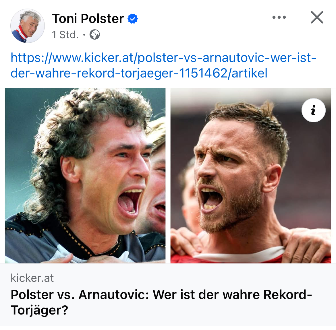 HMF Im ASB-Olymp Geschrieben vor 4 Stunden Christian2016 schrieb vor 6 Stunden: Was man vielleicht auch noch bedenken sollte: Polster hat in seiner ganzen Teamkarriere immer nur Stürmer gespielt, Arnautovic war sehr lange auch am Flügel. Die Anzahl der Spiele kann man also nicht so direkt vergleichen. Und angeblich, ich hab's irgendwo im Internet gelesen, aber vermutlich wird's schon stimmen, hat Arnautovic auch deutlich mehr Assists als Polster. Gestern hat man leider wirklich den Unterschied zwischen unseren Legenden gesehen. Schneckerl: zwar nicht mehr ganz am Puls der Fußballzeit, aber dennoch ein Sir, der sich einfach über alle neuen Erfolge des Teams und der Spieler freut, der nächsten Generation alles gönnt und der über seine eigenen Missgeschicke lachen kann. Polster dagegen redet live vor der Kamera einen soebenen eingefahrenen Rekordsieg Österreichs im ausverkauften Happel mit feiernden Fans schlecht. Das ist ja eigentlich das viel schlimmere, gar nicht so sehr, dass er wegen dem Verlust des Rekords zwider ist. Na servas, hast Du beim Trump hospitiert? 37500 war die offizielle Zuschauerzahl. 0 Zitieren Diesen Beitrag teilen Link zum Beitrag Auf anderen Seiten teilen More sharing options...