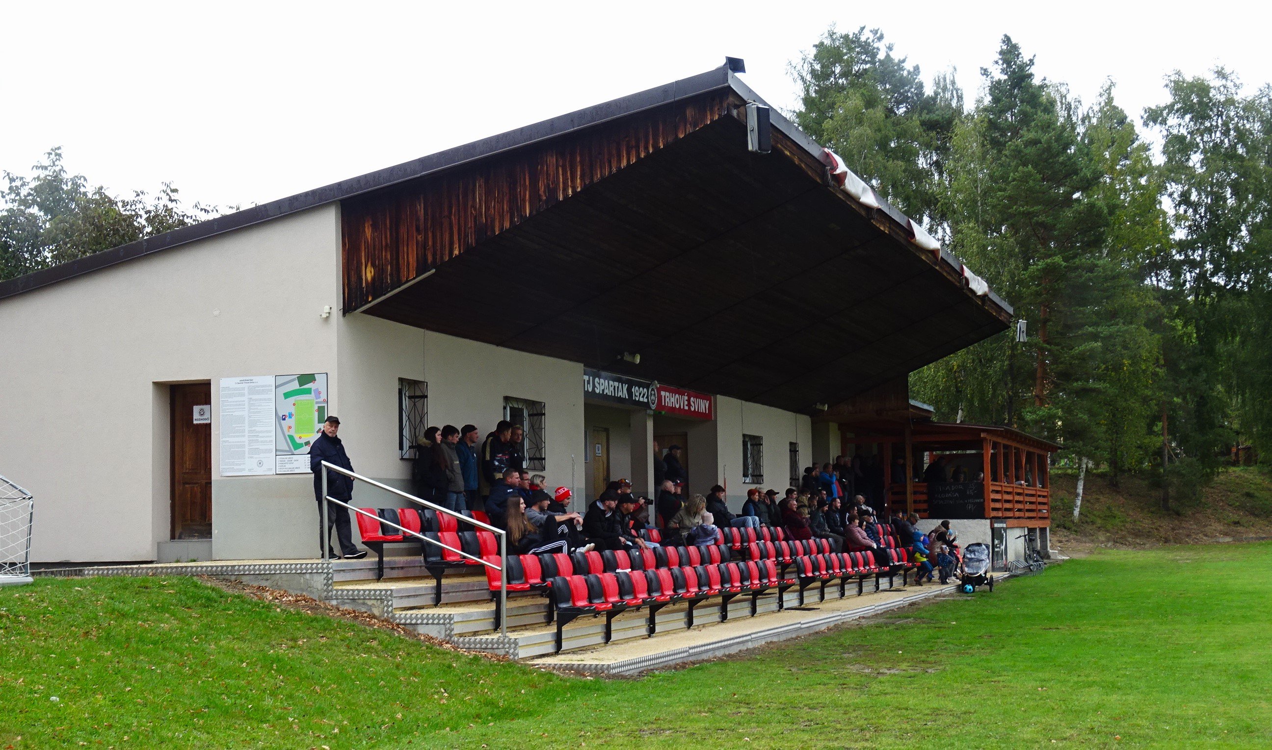 Nach dem Abstieg aus der 5.Liga des Jihočeský kraj tritt der TJ Spartak Trhové Sviny wieder in der Gruppe der Gruppe B der 6.Liga des südböhmischen Kreises an. Dort startete man auch mehr als durchwachsen und hält derzeit bei mehr Niederlagen als Siegen. Zum Heimspiel in der neunten Ligarunde kommt der Tabellennachzügler TJ Sokol Sepekov ins Sportovní areál nach Trhové Sviny. Dieses wurde nach den Aufstieg in die 5.Liga revitalisiert und verfügt nun über vier Sitzreihen mit Plastiksitzen in den Vereinsfarben Rot und Schwarz sowie über eine überdachten Bereich vor der Kantine bei dem es ebenfalls mit Bierbänken und Biertischen einige Sitzgelegenheiten gibt.