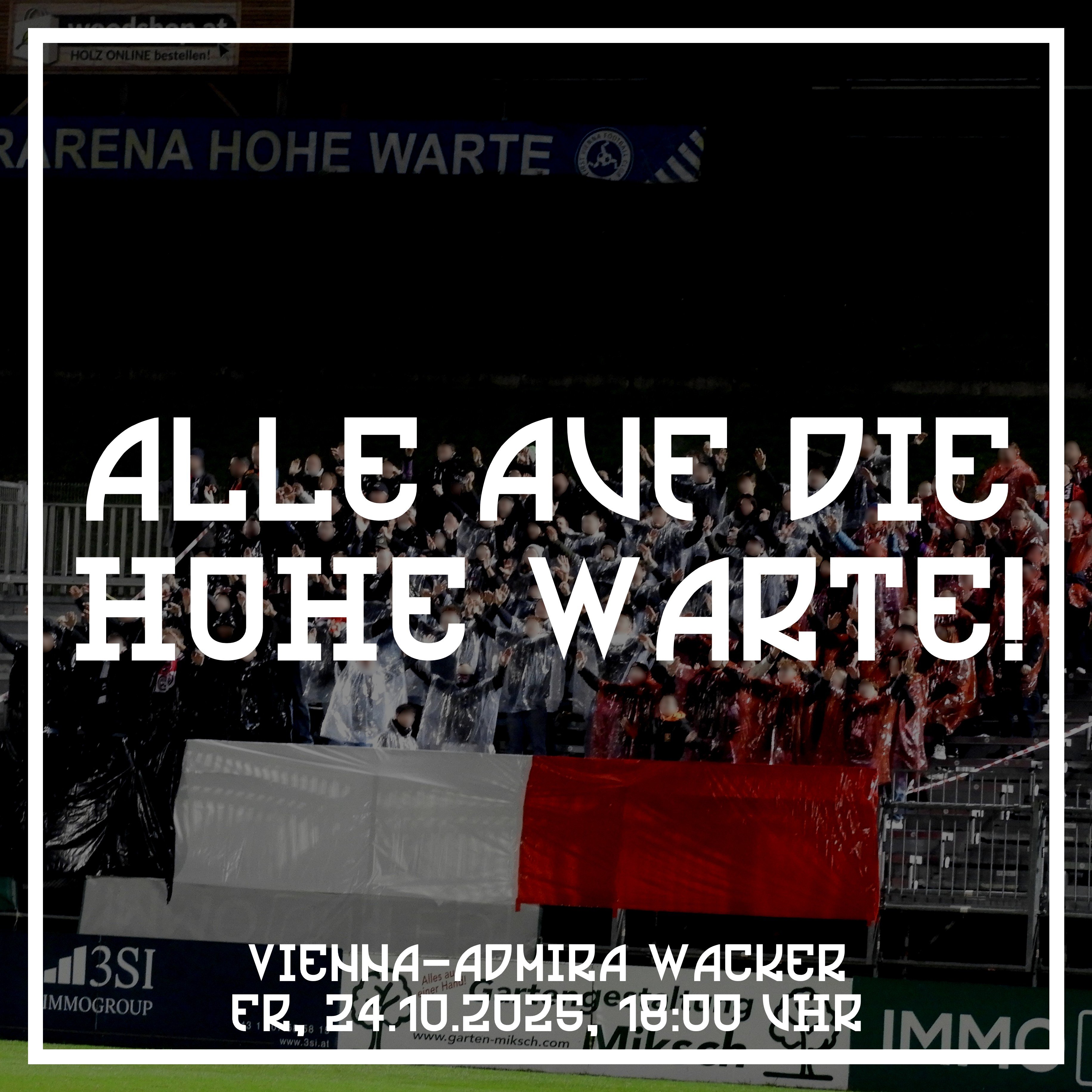 SüdstädterJungs12 Superstar Geschrieben vor 6 Stunden ALLE AUF DIE HOHE WARTE - GEMMA! Auch, wenn's am Freitag nix 5-teiliges wird: die Tifo-Gruppe hat wieder was vorbereitet und die Mannschaft braucht wieder so einen geilen Support wie gestern. Im großen Bus gibt's noch ausreichend Platz, nehmt das Angebot an und meldet euch bitte an! Egal wie, auf nach Döbling! -12- 1 Zitieren Diesen Beitrag teilen Link zum Beitrag Auf anderen Seiten teilen More sharing options...