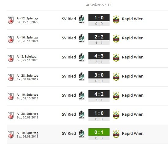 narf Wo is mei Kettn? Geschrieben vor 22 Stunden mrneub schrieb vor 53 Minuten: schwierig, das letzte mal vor 10 jahren dort auswärts gewonnen. ried gut in form, schau ma mal wie das heute im EC wird. Absurd: just in ihrer stärksten Heimsaison der jüngeren Vergangenheit (2015/2016, 32 Punkte in 18 Heimspielen) haben wir unseren letzten Dreier eingefahren. 2014/15: 18 Spiele, 26 Punkte, 10 TD. Ried 0/0/2 Rapid 2015/16: 18 Spiele, 32 Punkte, +/-0 TD. Ried 1/0/1 Rapid 2016/17: 18 Spiele, 27 Punkte, -4 TD. Ried 2/0/0 Rapid 2020/21: 16 Spiele, 16 Punkte, -8 TD. Ried 1/1/0 Rapid 2021/22: 16 Spiele, 14 Punkte, 4 TD. Ried 1/1/0 Rapid 2025/26: 5 Spiele, 5 Punkte -2 TD. In diesem Sinne hoffe ich auf Wiedergutmachung. 0 Zitieren Diesen Beitrag teilen Link zum Beitrag Auf anderen Seiten teilen More sharing options...