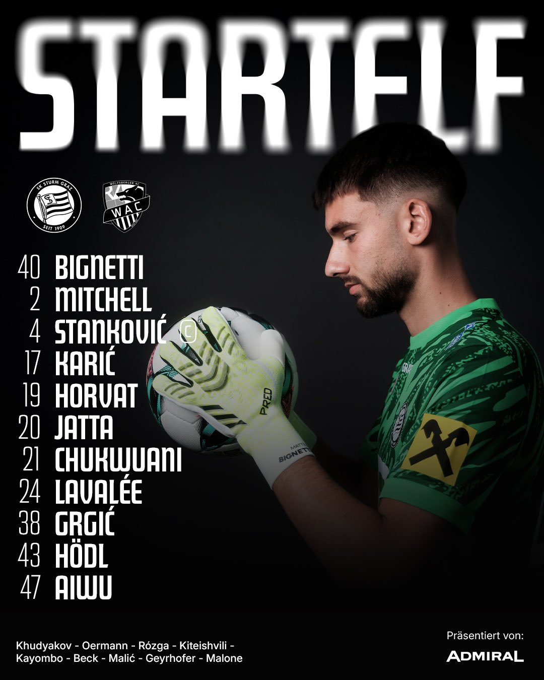 Vielleicht:  Khudy, Rozga, Hödl, Malic, Geyr, Grgic, Hierli, Bega, Mitchell.