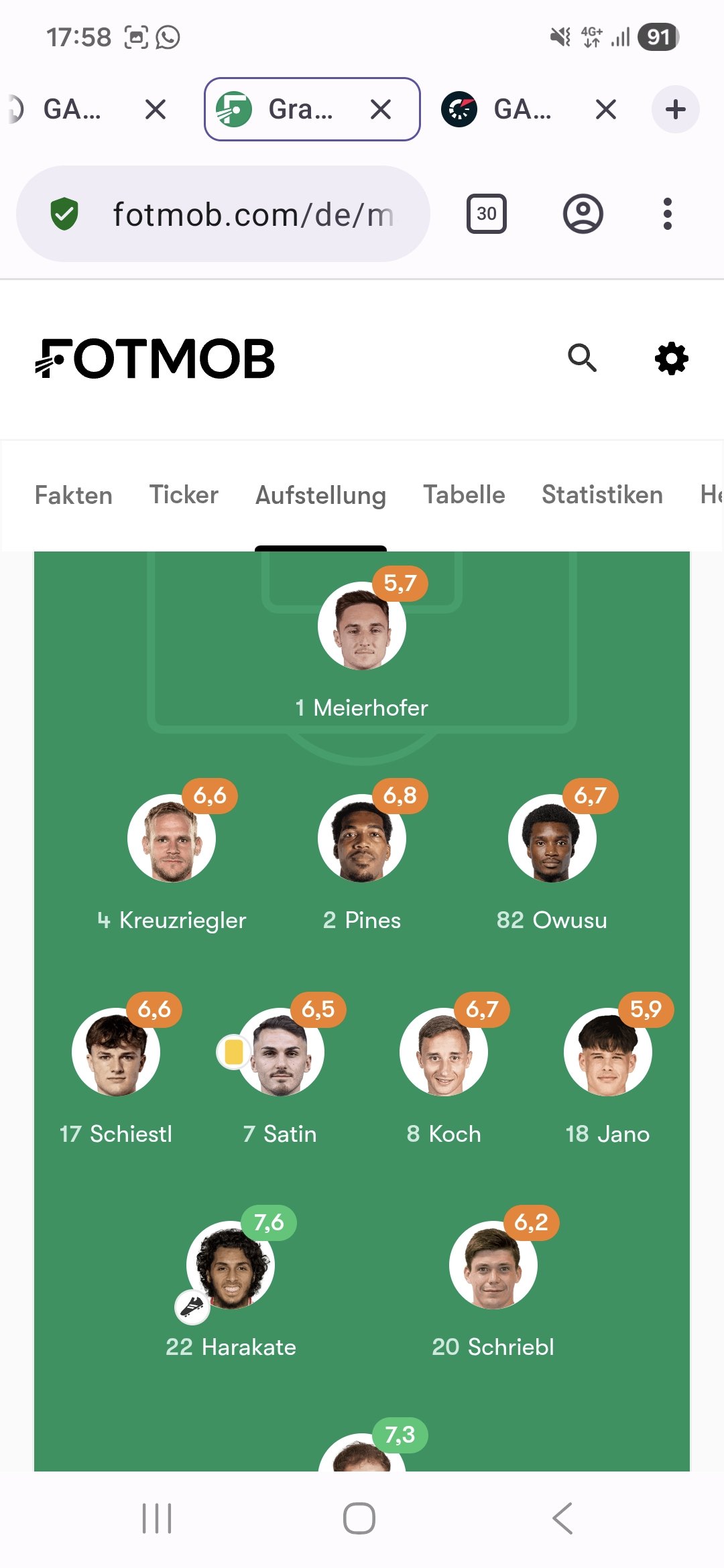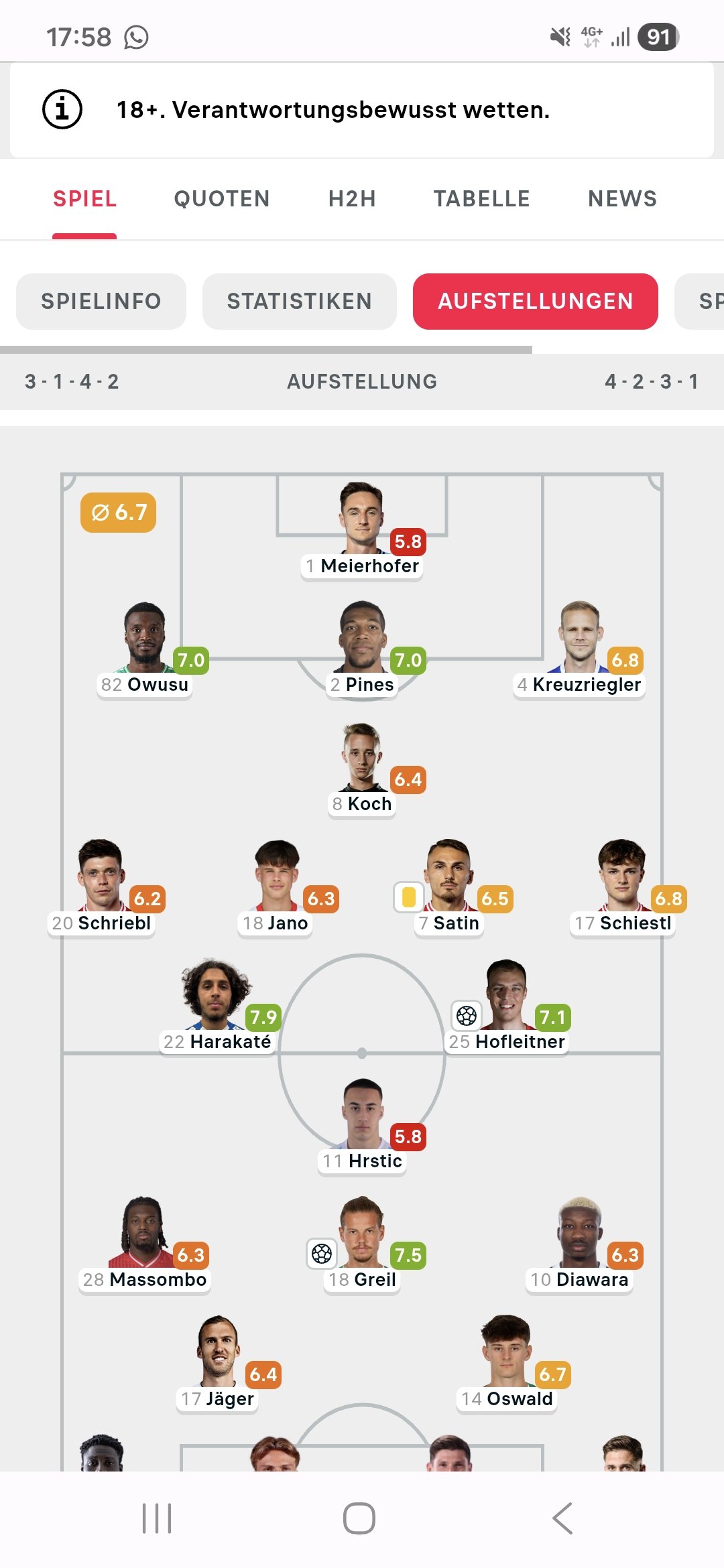 Ich hab zur Halbzeit die Stats gecheckt (siehe Anhang) weil ich mir dachte, Jano und Schriebl spielen so schlecht, dass muss sich ja in den Daten auswirken. Wennst dir die Summe aus Passgenauigkeit und Zweikampfquote anschaust war das bei Schriebl tatsächlich sehr wenig. Vorallem einige Bälle ohne Druck komplett sinnlos verschenkt und im Stellungsspiel hilflos. Aber ja, die Konkurrenz auf der Position machts nicht besser und Satin sollte im Zentrum bleiben.