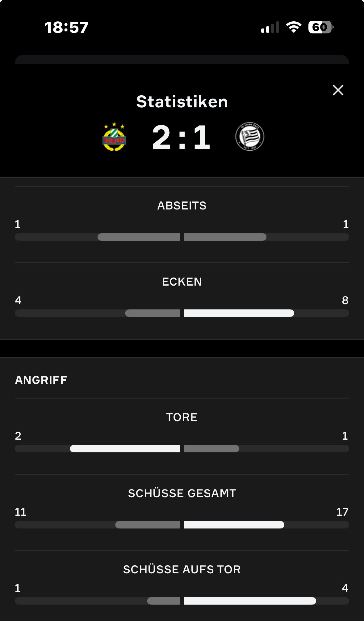 Das frage ich mich auch… wieviele Siege haben wir durch reines Glück in der Schlussphase gemacht? Im worst case würden wir auf den Platz von Hartberg stehen