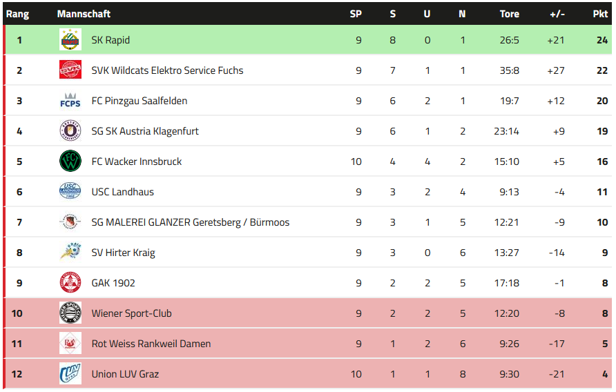 revo Oasch Geschrieben Freitag um 18:02 vkj schrieb am 30.10.2025 um 13:22 : Nach dem zuletzt spielfreien Wochenende biegt die Herbstmeisterschaft in die Zielgerade. Nur noch 2 Spiele stehen auf dem Programm, bevor die Winterpause beginnt. Die SK Rapid Frauen müssen in der 10. Runde am Sonntag auswärts gegen Wacker Innsbruck antreten. Kurzer Blick auf die Geschichte unserer Gegnerinnen: Unsichtbaren Inhalt anzeigen In der Saison 2006/2007 wurde die Frauenabteilung des Innsbrucker AC von Wacker Innsbruck übernommen. Die Frauen des Innsbrucker AC spielten zu dieser Zeit zwar in der Bundesliga, das übernommene Team musste allerdings aufgrund des Vereinswechsels aus der Bundesliga absteigen und in der Saison 2006/2007 in der 2. Frauenliga West antreten. Diese wurde auf Platz 1 abgeschlossen, wodurch der sofortige Wiederaufstieg in die Bundesliga geschafft wurde. Die Damen von Wacker Innsbruck haben die meiste Zeit ihres Bestehens in der Bundesliga verbracht. Es ist erst ihre 2. Saison in der bundesweiten 2. Liga und erst die 4. Saison, die in der zweithöchsten Spielklasse absolviert wird: 2. Frauenliga West: 2006/2007: Platz 1 → Aufstieg in Bundesliga Frauen Bundesliga 2007/2008: Platz 3 (von 10 Teams – Grunddurchgang) 2007/2008: Platz 2 (von 5 Teams – Oberes Playoff) 2008/2009: Platz 4 (von 10 Teams - Grunddurchgang) 2008/2009: Platz 2 (von 5 Teams – Oberes Playoff) 2009/2010: Platz 2 (von 10 Teams - Grunddurchgang) 2008/2009: Platz 3 (von 5 Teams – Oberes Playoff) 2010/2011: Platz 4 (von 10 Teams) 2011/2012: Platz 3 (von 10 Teams) 2012/2013: Platz 3 (von 10 Teams) 2013/2014: Platz 4 (von 10 Teams) 2014/2015: Platz 4 (von 10 Teams) 2015/2016: Platz 9 (von 10 Teams) 2016/2017: Platz 10 (von 10 Teams) Frauen 2.Liga West/Mitte 2017/2018: Platz 1 (von 6 Teams) Frauen Bundesliga 2018/2019: Platz 6 (von 10 Teams) 2019/2020: Platz 10 (von 10 Teams) 2020/2021: kein Ligabetrieb (COVID) 2021/2022: Platz 8 (von 10 Teams) 2022/2023: Platz 9 (von 10 Teams) 2023/2024: Platz 10 (von 10 Teams → Abstieg) 2. Frauen Bundesliga 2024/2025: Platz 4 (von 12 Teams) Aktuelle Saison: In der aktuellen Saison lief es für sie Frauen von Wacker Innsbruck ziemlich durchschnittlich. Derzeit liegen sie auf Rang 5 mit bereits 8 Punkten Rückstand auf uns. Allerdings haben sie auch 8 Punkte Vorsprung auf die Abstiegsränge und sind somit derzeit in keiner akuten Gefahr, in den Abstiegskampf reingezogen zu werden. Allerdings hat Wacker Innsbruck ein Spiel mehr ausgetragen, da das Spiel der 11. Runde gegen LUV Graz bereits am 26.10.2025 ausgetragen wurde: Die bisherigen Spiele: Runde 01: 0:0 Auswärts bei FC Pinzgau/Saalfelden Runde 02: 2:2 Zu Hause gegen GAK 1902 Runde 03: 0:2 Auswärtsniederlage gegen SVK Wildcats Runde 04: 0:1 Heimniederlage gegen USC Landhaus Runde 05: 1:1 Auswärts bei SG Geretsberg/Bürmoos Runde 06: 4:1 Heimsieg gegen Wiener Sport-Club Runde 07: 3:1 Auswärtssieg gegen SV Hirter Kraig Runde 08: 3:1 Heimsieg gegen SG SK Austria Klagenfurt Runde 09: 0:0 Auswärts bei Rot-Weiss Rankweil Damen Runde 10: offen Runde 11: 2:1 Auswärtssieg bei LUV Graz Aktuelle Formkurve: SK Rapid Frauen: S – S – S – S – S – S – N – S – S Wacker Innsbruck: U – U – N – N – U – S – S – S – U – S Verloren haben sie bisher nur gegen die Wildcats und gegen Landhaus (gegen die wir ja auch verloren haben). Sie sind also schwer zu besiegen und gehören defensiv zu den stärkeren Teams. Mit bisher 10 Gegentoren liegen sie in dieser Wertung hinter Rapid (5GT), Pinzgau/Saalfelden (7GT) und den Wildcats (8GT) auf Rang 4. Habe von Innsbruck bis jetzt nur ein Spiel gesehen (den 3:1 Sieg gegen Klagenfurt). Fand sie in der Partie spielerisch besser als Klagenfurt. Vor allem auf ihre Nummer 07, Sylvia MAKUNGU, sollten wir aufpassen. Die hat da mMn ein bärenstarkes Spiel abgeliefert, gekrönt mit einem absoluten Traumtor zum 2:1. Für alle, die nicht nach Tirol fahren können: Bisher wurden einige Spiele von Innsbruck getickert. Auf der ÖFB-Seite steht dazu zwar noch nichts, aber vielleicht ergibt sich ja noch etwas. Ansonsten einfach hier im Thread öfters reinschauen. Werde versuchen, euch die wichtigsten Spielereignisse mitzuteilen. An alle anderen: Auf nach Innsbruck und supporten wir unsere Frauen zum nächsten Sieg! Wäre sehr cool, wenn ein paar Tiroler Grün-Weiße die Gelegenheit nutzen würden, vorbeizuschauen. Unser Team weiß den Support jedenfalls zu schätzen! Vorbericht ÖFB Tabelle: Top-Torschützinnen: SK Rapid Frauen: 1. 7 Tore: Jasmin KÖNIG, Lisa RAMMEL 2. 6 Tore: Aldijana MASINOVIC 3. 2 Tore: Tabea AITENBICHLER, Vanessa RAUTER Wacker Innsbruck: 1. 4 Tore: Sylvia MAKUNGU 2. 3 Tore: Marie-Sophie Anfang 3. 2 Tore: Miriam HOCHMUTH Kurzinfo (in Klammer die Tabellenplatzierung nach der letzten Runde): Wacker Innsbruck (5.) - SK Rapid Frauen (1.) 2. Frauen Bundesliga, 10. Runde Sonntag, 02.11.2025, 11:00 Uhr Tivoli W1 Schiedsrichterteam: SR: Manfred HAAS 1. Assistent*in: Walter TSCHON 2. Assistent*in: Marc-Raphael GHERI Deine Threaderöffnungen sind immer ein Traum 2 Zitieren Diesen Beitrag teilen Link zum Beitrag Auf anderen Seiten teilen More sharing options...