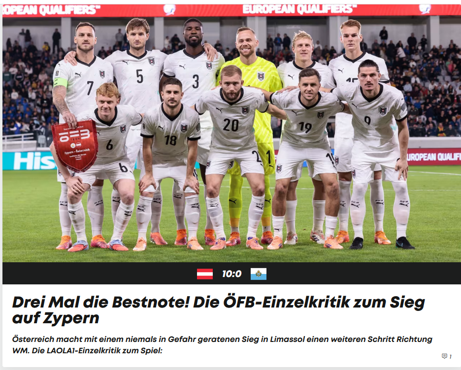Anonymer Thomas Im ASB-Olymp Geschrieben vor 23 Stunden schimli schrieb vor 4 Minuten: Qualitätsjournalismus @ Laola1 10:0 gegen San Marino bei Sieg gegen Zypern. Das kann nur Österreich 0 Zitieren Diesen Beitrag teilen Link zum Beitrag Auf anderen Seiten teilen More sharing options...