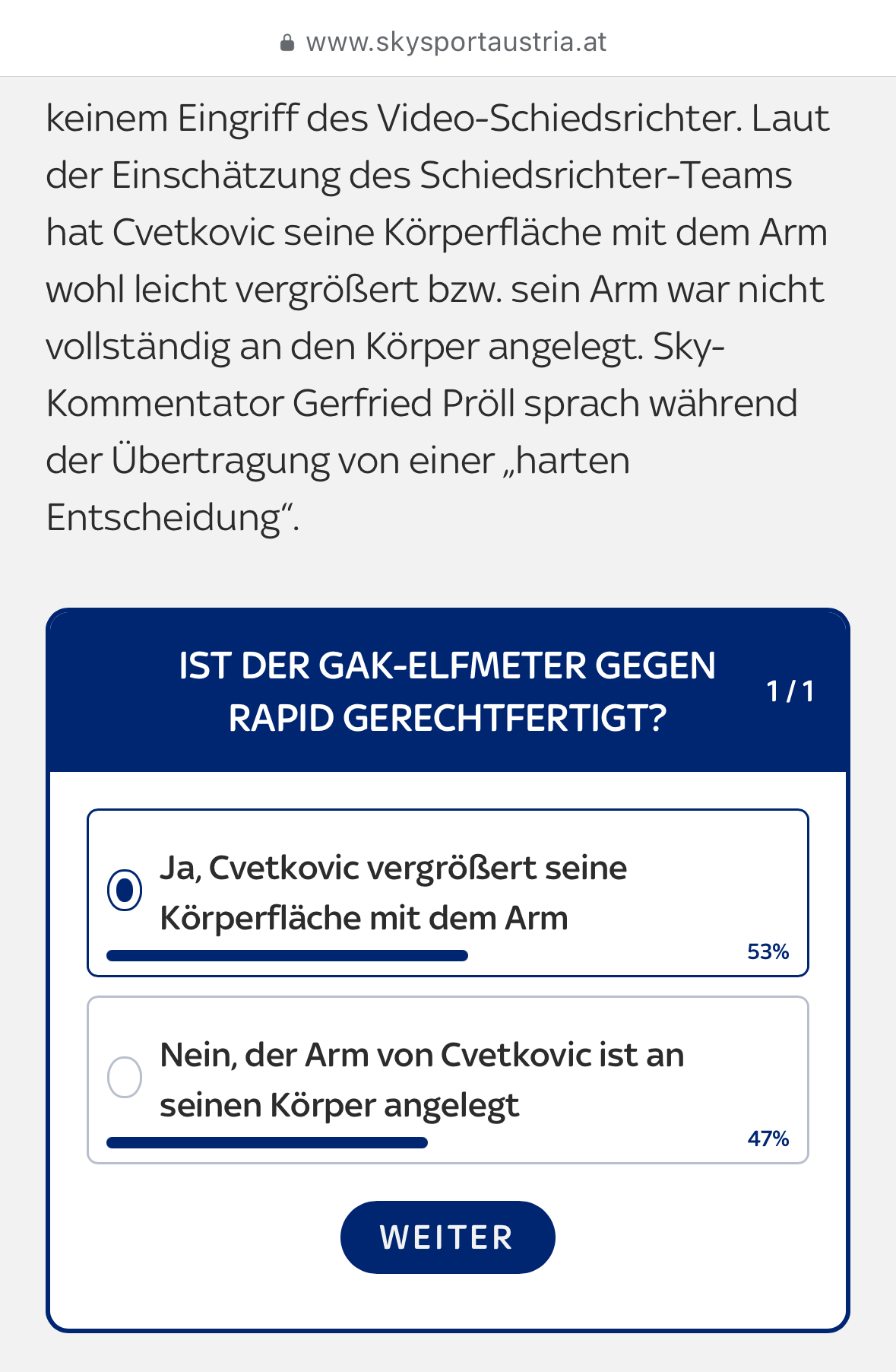 Was mMn mitgespielt hat, dass der 11er gegeben wurde ist, dass der Schuss wirklich übel aufs Tor gekommen wäre. Der war brutal platziert. Wäre der ins Nirvana gegangen, könnt ich mir vorstellen, dass er ihn zum TV bittet.