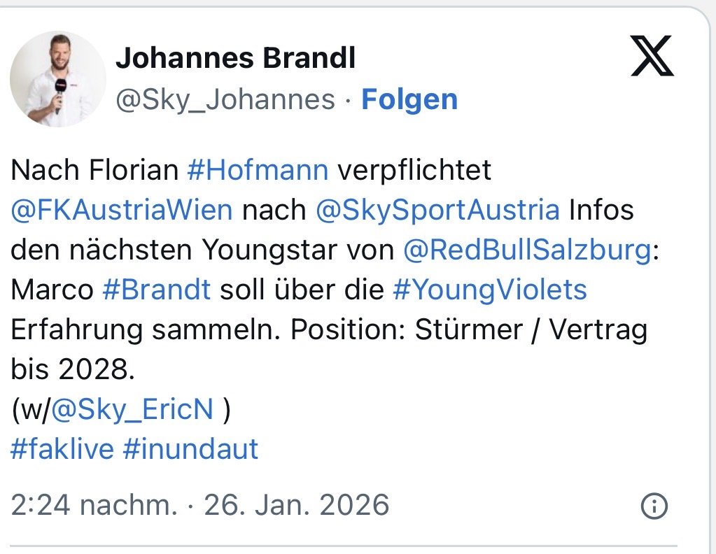 Auch wenn ich mir ein Jahr länger Vertrag gewünscht hätte, finde ich es gut, wie wir Junge österreichische Spieler für unseren Verein gewinnen aktuell. Man mag Wagner fehlende Expertise vorwerfen im Bezug auf dem Posten, aber ich empfinde was da bisher im Winter passiert ist, als absolute Wohltat.