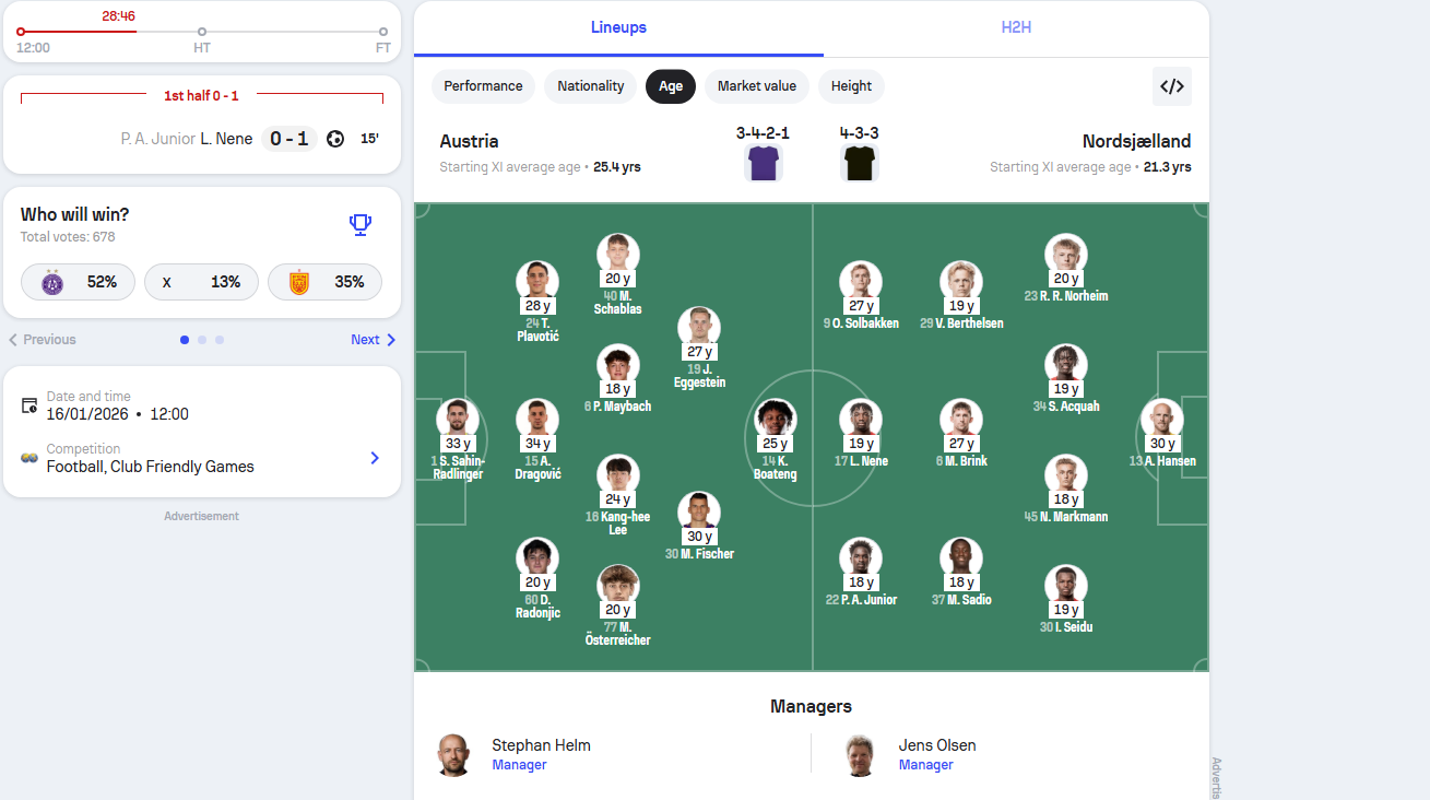 lxkas1911 ASB-Legende Geschrieben vor 17 Stunden FK Austria Wien - FC Nordsjælland Live ticker, H2H und Aufstellungen | Sofascore 1 Zitieren Diesen Beitrag teilen Link zum Beitrag Auf anderen Seiten teilen More sharing options...