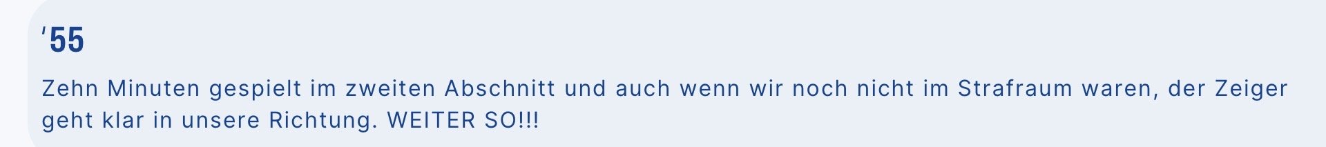 Deni Posting-Pate Geschrieben vor 3 Stunden Altach zieht das Powerplay auf, die brauchen auch die Punkte. Ganz ehrlich. Das ist keine Mannschaft am Platz. 5 Verteidiger im Verbund. 2 die sinn- und hirnlos im MF rumlaufen müssen. 3 Vorne die die Kugel original 10 Min vom Spiel haben. Da gehts nicht mehr um Verunsicherung oder sonst was. Das sind strukturelle Probleme. 1 Zitieren Diesen Beitrag teilen Link zum Beitrag Auf anderen Seiten teilen More sharing options...