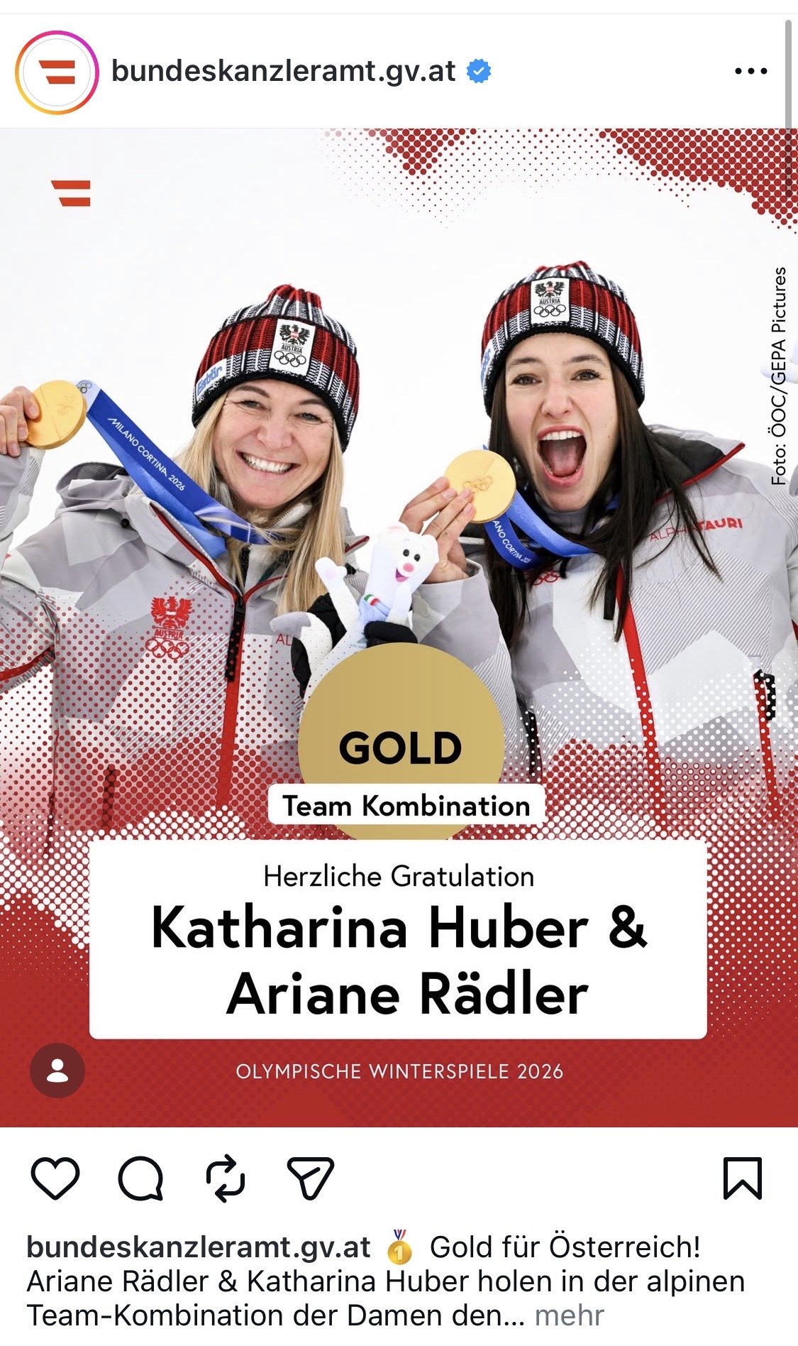 chris843 Alpenbummerl Geschrieben vor 1 Stunde Admira Fan schrieb vor 2 Minuten: nein das Bundeskanzleramt, und schon wieder gelöscht scheinbar Naja. Die Instaseite ist ja Olympic Team Austria. Die wird nicht vom Bundeskanzleramt sein, nehme ich an. Das Kommentar ja, und da hätte jemand aufpassen müssen von der Pressebetreuung, aber der Ursprungspost ist dann doch eher ÖOC oder? 0 Zitieren Diesen Beitrag teilen Link zum Beitrag Auf anderen Seiten teilen More sharing options...