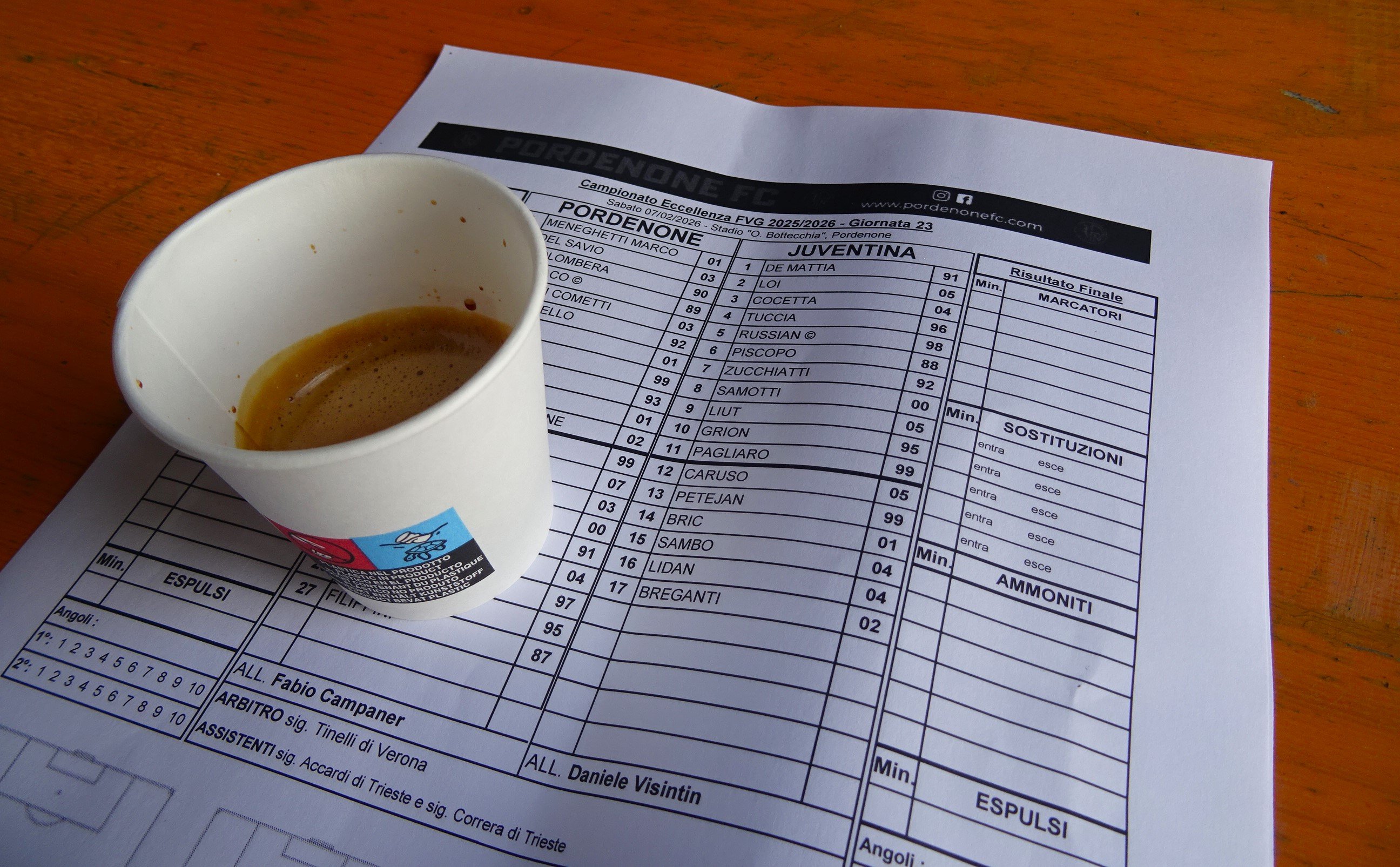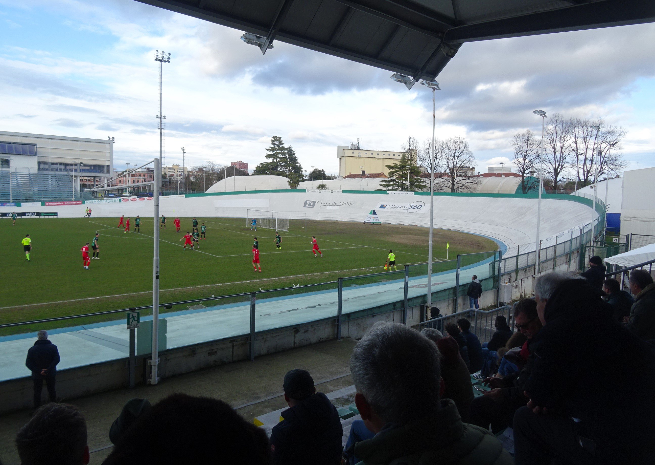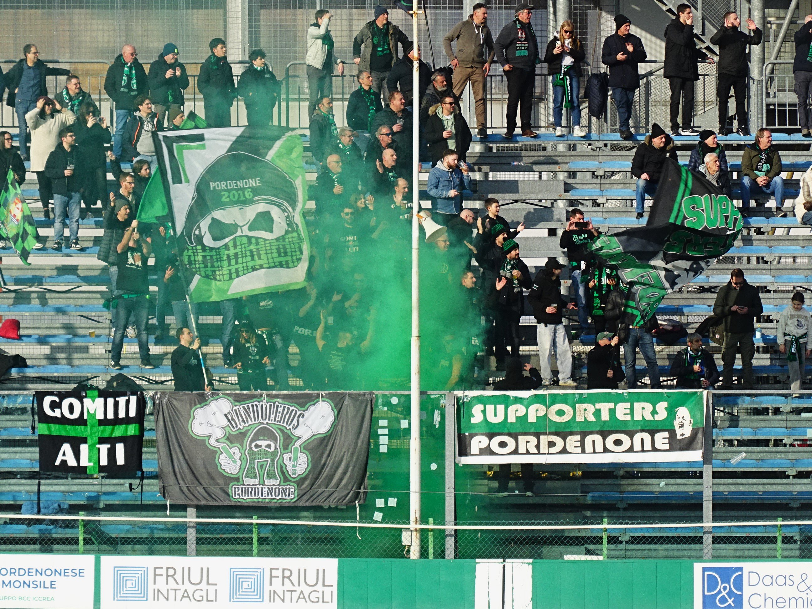Heffridge "Inside everyone there´s a litte nut!" Geschrieben vor 11 Stunden Pflichtspiele gibt es in Mitteleuropa Anfang Februar noch nicht sehr viele und die dann noch fehlenden Plätz sind nochmals in einer geringeren Anzahl vorhanden. Somit fiel die Wahl an diesem Wochenende abermals auf einen Besuch der im Norden Italiens befindlichen Region Friuli-Venezia Giulia. Doch das Regenwetter in dieser Region unter der Woche machten die Planungen etwas schwieriger. Doch als es sich abzeichnete, dass es hier zu keinen großflächigen Absage kommen wird, machten wir uns an die konkreten Planungen, die schließlich eine samstägige Tagesfahrt vorsahen. Martin übernahm dankenswerterweise das Steuer und Andi St. begleitete uns ab Leoben. Mit einem Spiel in Pordenone und einem Spiel in Monfalcone hatten zwei Teams der Spitzengruppe der Liga auch ein Heimspiel und da das Stadio Ottavio Bottecchia ein Radstadion ist, kam die Variante mit dem Spiel des Pordenone FC gegen ASD Juventina Sant'Andrea zum Zug. Nach einer Stärkung in einer Pizzeria und einer Runde durch die Innenstadt Pordenones ging es dann auch schon zum Velodrom, das nach dem ersten Tour de France Siegers aus Italien benannt wurde. Diesem war kein langes Leben beschienen, wurde er 1927 im Alter von 34 Jahren auf einer Trainingsfahrt im Friaul von einem Bauern erschlagen, als dieser Bottecchia beim Essen seiner Trauben erwischte. Das Stadion ist zwar ein echter Hingucker, aber bloß mit einer Haupttribüne ausgestattet. Auf der Gegenseite gibt es noch eine Stahlrohrtribüne, aber mittlerweile erfüllt man hier die infrastrukturellen Anforderungen für die ersten drei Profiligen Italiens nicht mehr. Als Pordenone sogar einige Zeit in der Serie B spielt, musste man daher nach Udine ausweichen. Nach dem Abstieg in die Serie C war dann auch das Stadion in Lignano die Heimstätte Pordenones. Der Verein geriet in wirtschaftliche Schwierigkeiten und wurde 2024 als Nouvo Pordenone 2024 neu gegründet. Seit dieser Saison nimmt man wieder in der fünftklassigen Eccellenza Friuli-Venezia Giulia teil und hofft so bald als möglich wieder überregional spielen zu können. In dieser Saison befindet man sich in der Spitzengruppe der Tabelle und wird sich wohl mit LME und Monfalcone den Meistertitel in der Liga ausmachen. Der heutige Gast, USD Juventina Sant'Andrea, stammt aus dem an der Grenze zu Slowenien befindlichen Stadt Gorizia. Schiedsrichter Tinelli, der an der Linie unter anderem von der adretten Michela Accardi unterstützt wird, führt beide Mannschaften aufs Feld. Die Gäste sind in der Tabelle im oberen Mittelfeld klassiert, womit es von der Papierform her heute kein Spaziergang für Pordenone werden wird. Die sich auf der Gegentribüne befindlichen Tifosi bilden heute einen ansehnlichen Block und haben zahlreiche Fahnen und Transparente mit. Neben lautstarker Unterstützung gibt es ab und an auch etwas Rauch und Blinker. Einen Gästefanblock gibt es heute zwar nicht, aber man sieht einige Besucher mit Fanutensilen Sant'Andreas, das einen Truthahn im Wappen hat, auf der Haupttribüne. Pordenone beginnt stark und geht durch Zorzetto in der 23.Minute auch in Führung. Doch je länger die ersten 45 Minuten dauern, desto stärker werden die Gäste. Es gibt zahlreiche Chancen und als Martin bei einem Eckball für Sant'Andrea meint, dass der Ausgleich in der Luft liegt, hämmert Samotti den Ball aus spitzem Winkel unter die Latte. In der Pause genehmigen wir uns eine Espresso und dies scheinen wohl auch die Spieler Pordenones gemacht zu haben. Toso (52.Minute) und Zorzetto (57.Minute) sorgen mit einem Doppelschalg für klare Verhältnisse. Toffoli erzielt zehn Minuten später den vierten Treffer Pordenones und nach einem weiteren Doppelschlag durch Toffoli (75.Minute) und Borsato (76.Minute) ist Sant'Andrea völlig gebrochen. Mit diesen schwarzen 30 Minuten rechnete bei den Gäste niemand, aber es gibt einfach so Tage, bei denen sich der Gegner in einen Rausch spielt und man selbst zu Statisten degradiert wird. In der Schlussphase und in der Nachspielzeit fallen dann zwar keine weiteren Tore mehr, aber das ändert nichts daran, dass die Spieler Pordenones dieses tollen Sieg euphorisch mit den Fans bejubeln. Wir verlassen dann Pordenone, ziehen aber noch gegen Osten weiter, wo wir um 17:00 Uhr noch ein U19-Spiel in Casarsa della Delizia besuchen. Nouvo Pordenone 2024 - ASD Juventina Sant'Andrea 6:1 (1:1) 0 Zitieren Diesen Beitrag teilen Link zum Beitrag Auf anderen Seiten teilen More sharing options...