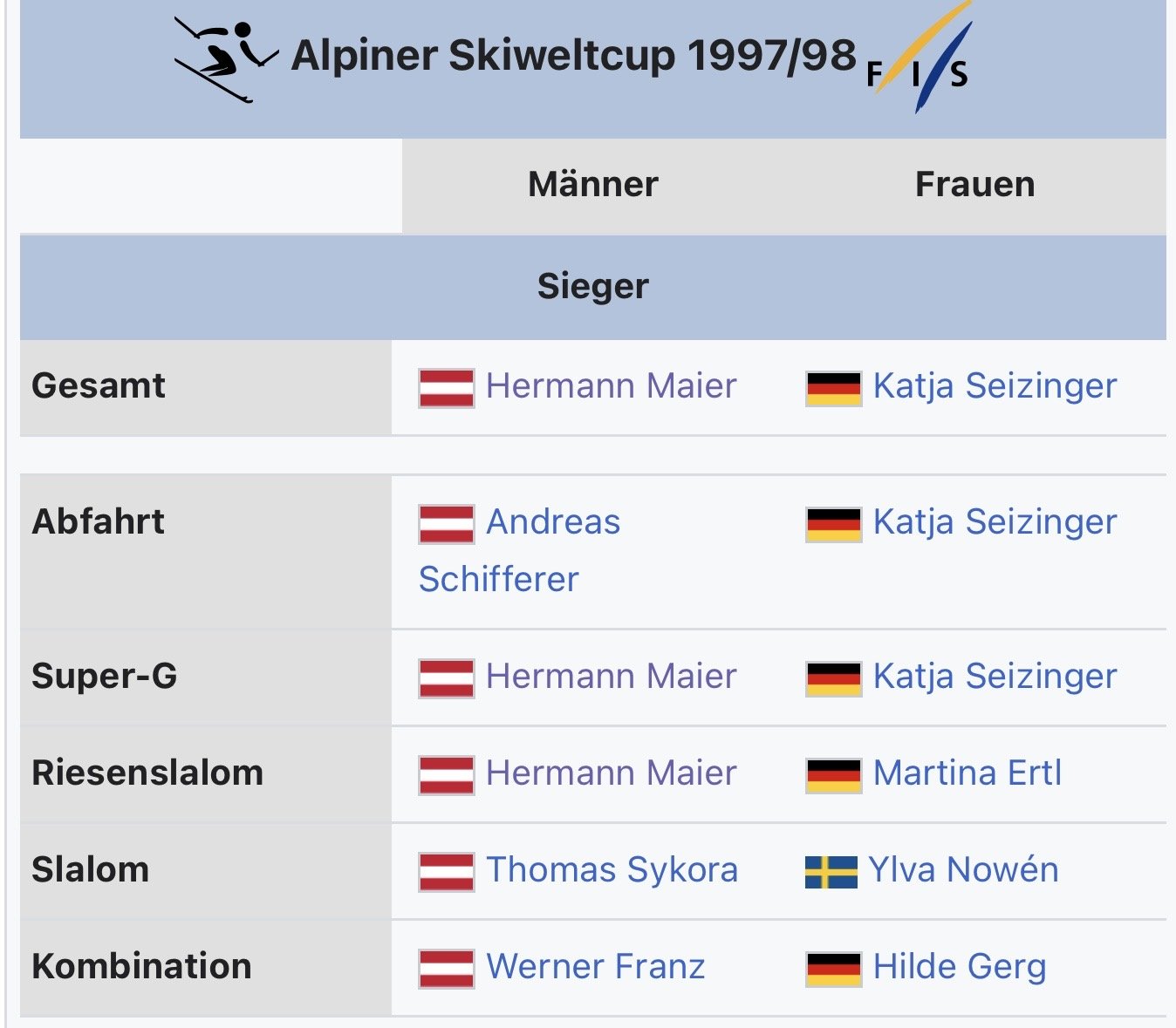 TomTom90 Hütteldorf Geschrieben vor 3 Stunden (bearbeitet) Korki14 schrieb vor 6 Minuten: Schweizer Herren sind unglaublich! Selbst zu unserer Prime Time waren wir nicht so erfolgreich wie die. Ja i mags a net, bücken tut sich maximal meine Katze, aber des is wirklich stark. Wir hingegen sind bei den Männern eine Farce, da passt garnix. Grad bei mir in OÖ hab ich immer wieder den Namen Kriechmayer gehört - ich habs vorher schon gesagt, der ist jetzt schon ein paar Jahre nimmer 1-5, sondern 6-15. Schade im Riesentorlauf waren wir zu Saisonbeginn stark. Naja zur Prime hatten wir Maier, Eberharter, Walchhofer, Strobl & Co. Der Neunfachsieg damals am Patscherkofel kam nicht von ungefähr. Aber ja im Prinzip hätten die Genannten heuer auch noch fahren können bearbeitet vor 3 Stunden von TomTom90 0 Zitieren Diesen Beitrag teilen Link zum Beitrag Auf anderen Seiten teilen More sharing options...
