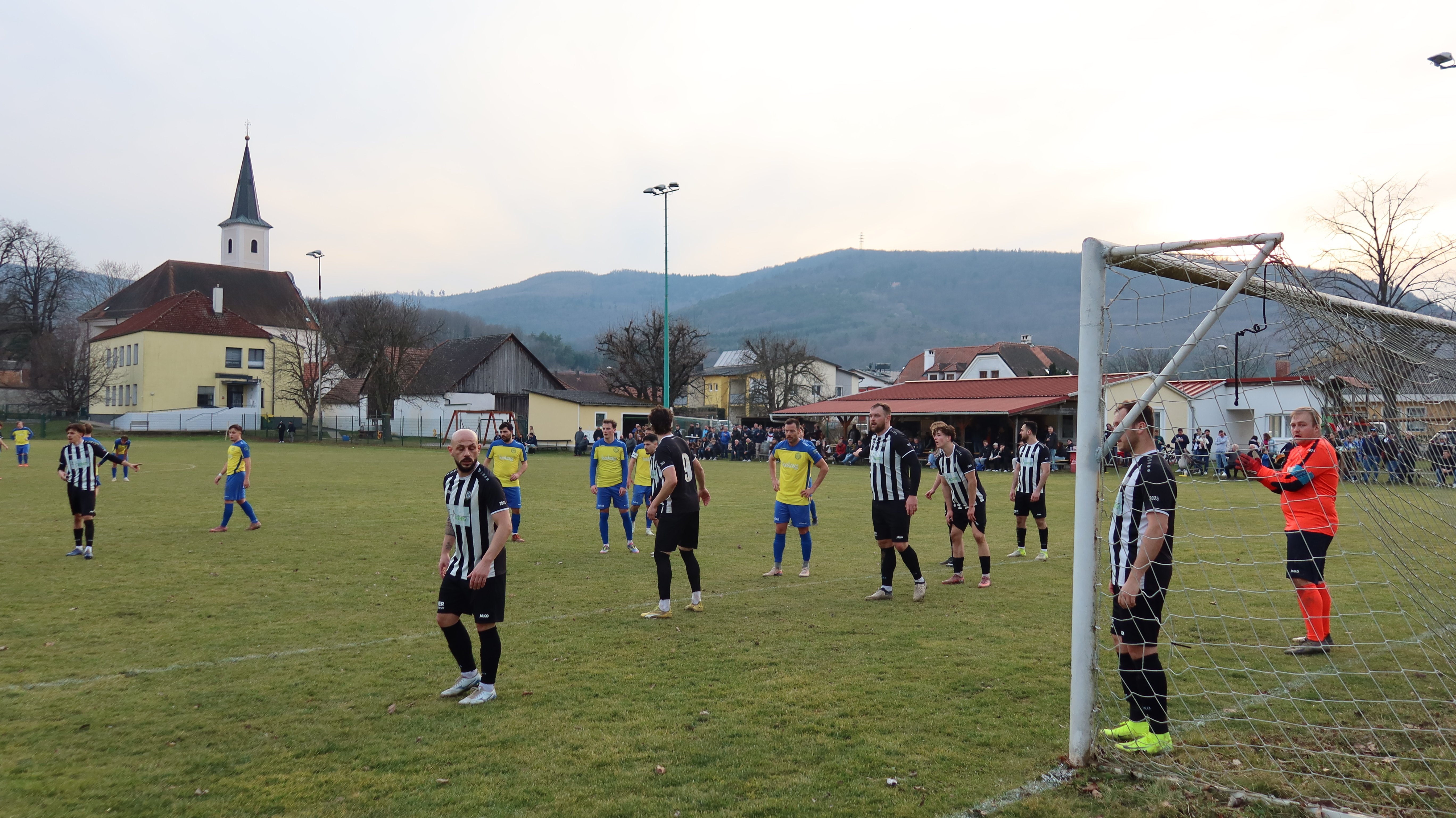gerhard79 Wahnsinniger Poster Geschrieben vor 4 Stunden Das für Samstag angesetzte Spiel der II. Liga Mitte wurde wegen Unbespielbarkeit des Platzes in Lockenhaus kurzerhand auf Sonntag in Rattersdorf verschoben. Da hier nur selten gespielt wird, nutzte ich die Gelegenheit und gab diesem Spiel den Vorrang gegenüber dem Spiel in Tschurndorf. Zum meteorologischen Frühlingsbeginn gab es standesgemäß Sonnenschein und Temperaturen um die 15 Grad. Ein Rundgang durch den Ort gibt nicht viel her, aber immerhin die Wallfahrtskirche, die sich direkt hinter dem Sportplatz befindet, und ein Kugelbunker aus dem 2. Weltkrieg konnten besichtigt werden. 150 Zuschauer verfolgten eine unterhaltsame, aber relativ einseitige Partie, denn die Gäste aus Kobersdorf gaben den Ton an und fixierten bereits in der ersten halben Stunde mit drei Toren die Vorentscheidung. Nach der Pause wurden die 3 Punkte clever nach Hause gespielt, während der SC Lockenhaus die Frühjahrssaison mit einer schwachen Leistung verpatzte. Fotos 0 Zitieren Diesen Beitrag teilen Link zum Beitrag Auf anderen Seiten teilen More sharing options...
