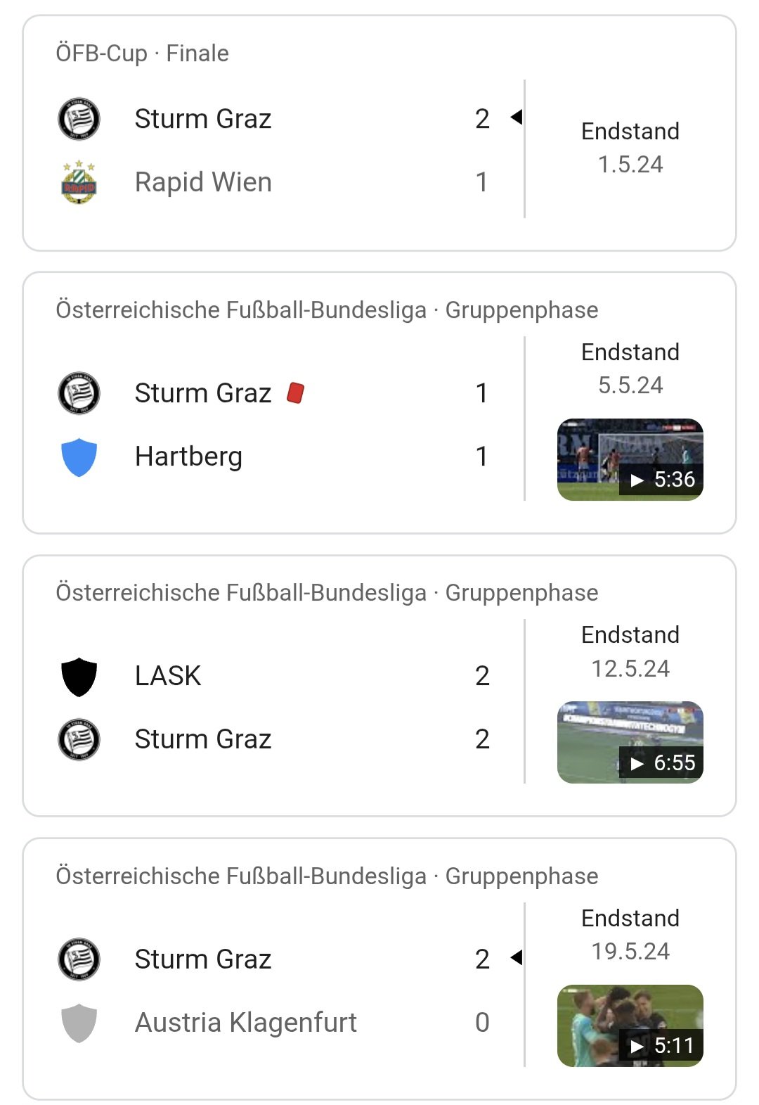 B.Andsinger Bester Mann im Team Geschrieben vor 3 Stunden Keine Ahnung was man zu diesem spiel sagen soll, das war sehr zahnlos und erinnert mich ein bisschen an Sturm gegen Hartberg 2021, als Prass einen Ball übers Stadiondach gejagt hat. Damals war die Partie auch ähnlich gelagert, nur waren wir dann doch etwas gefährlicher als heute. Terrorball par excellence und ich kann mir vorstellen, dass unsere nur 80% gegeben haben, um sich keine Gelbsperre gegen den Lask einzufangen. Anders ist diese Harmlosigkeit, wie sie zuletzt im Herbst unter Säumel zu sehen war, nicht erklärbar für mich. 90 Minuten lang den Ball hin und herschieben, das tat schon weh. Weinhandl leider Totalausfall heute, den hätte man schon zur HZ wechseln müssen, Gizo tat sich auch schwer und Koller hatte auch nicht seine beste Partie. Mitchell und Seedy die wenigen Lichtblicke für mich. Und diesmal müssen wir wirklich froh sein, das das durchwegs schlechte SR Team in einer Szene uns den Hintern gerettet hat. Ein Schopp Tor gegen uns war zwar aufgelegt, die Aberkennung desselben aber schon ein kleiner Skandal. Glücklich für uns, hoffentlich hat es noch einen Mehrwert für die künftigen Spiele.. 1 Zitieren Diesen Beitrag teilen Link zum Beitrag Auf anderen Seiten teilen More sharing options...