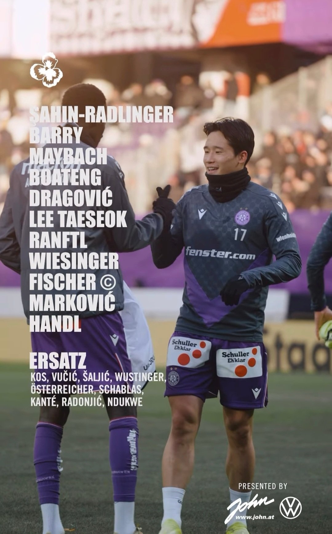3 (gezwungene) Änderungen in unserer Startelf, ein Startelf-Debüt, Ersatzbank-Comeback von Wusti. Ebenso drei Startelf-Änderungen beim Gegner. Bei uns im Matchkader 4 Legionäre, beim Gegner 10.