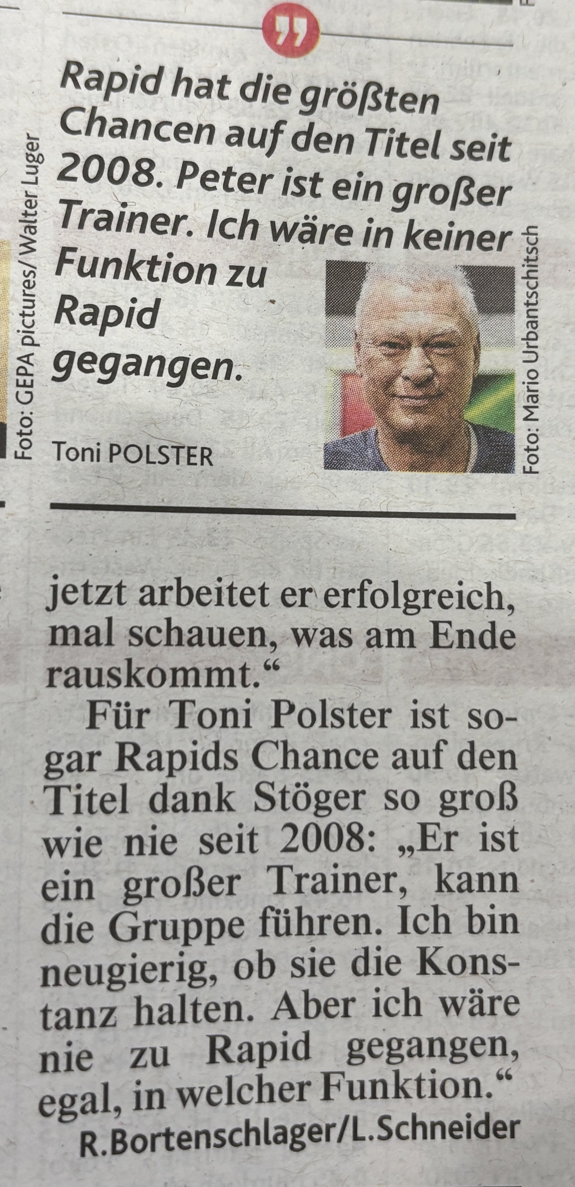 veilchen27 Postinho Geschrieben Sonntag um 16:56 (bearbeitet) Ex-Trainer Peter Stöger hat heute sein erstes Derby als Rapid-Trainer bestritten und 1:3 verloren. Edit: @tastsofast war schnell, Respekt bearbeitet Sonntag um 16:56 von veilchen27 2 Zitieren Diesen Beitrag teilen Link zum Beitrag Auf anderen Seiten teilen More sharing options...