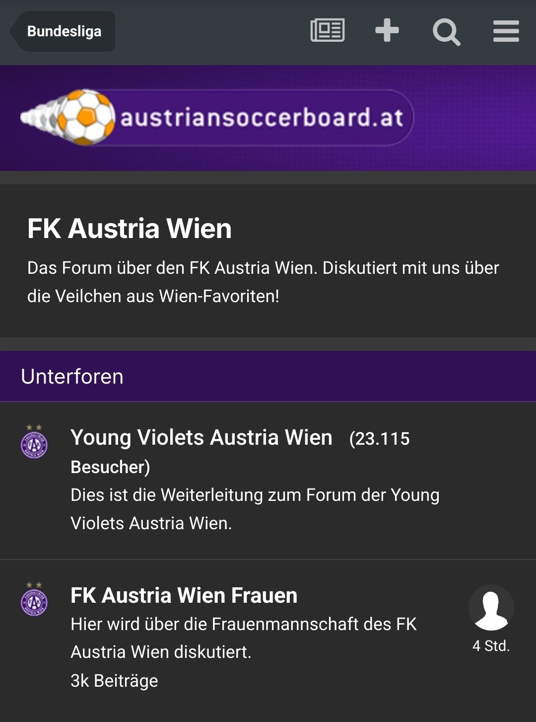 Gschichtldrucka Happy Peppi Geschrieben vor 15 Minuten Was wurde eigentlich aus unserem Young Violets Forum? Purkersdorf und Sturm haben ihres für die Amateure noch. 0 Zitieren Diesen Beitrag teilen Link zum Beitrag Auf anderen Seiten teilen More sharing options...