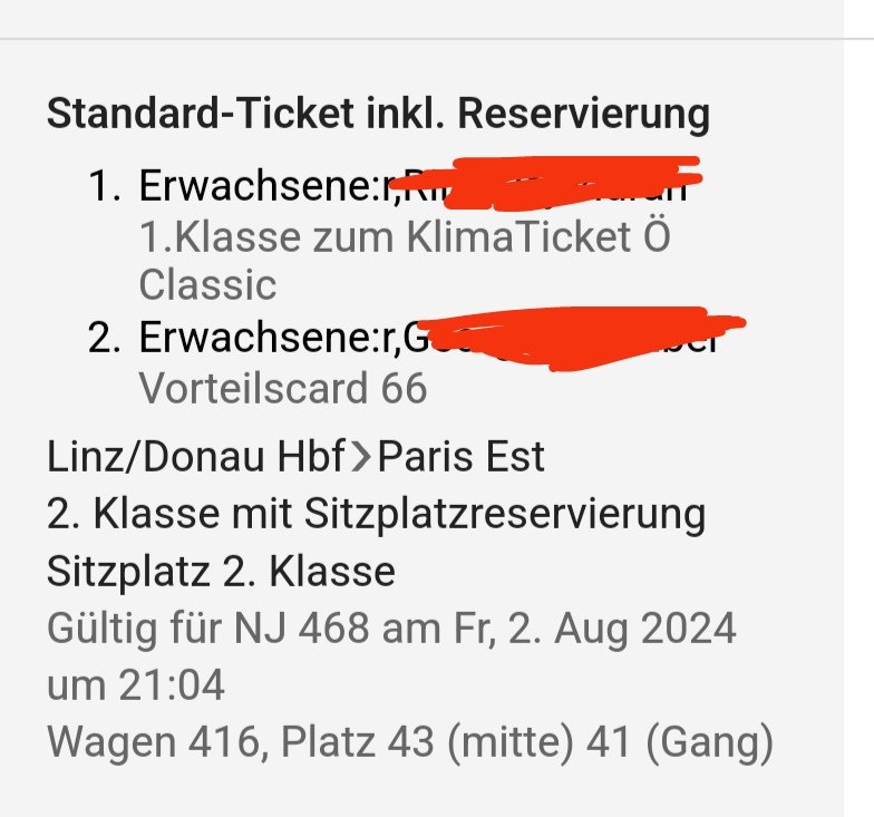 Ramalho90 Bunter Hund im ASB Geschrieben 23. August 2024 (bearbeitet) Habe Ein ticket für mich und einer Begleitung für den Nachtzug von Linz nach Paris gebucht - ticket jeweils ca.62€ pro Person. Hab hab Vorteilskarte 66(war bereits im Konto hinterlegt bei der Buchung) , meine Begleitung Klimaticket Ö. Habe das beim Kauf auch angegeben - am Preis hats nix geändert. Als es dann soweit war, kam die Kontrolleurin ( mit Roma/Sinti Kopftuch) um die Tickets zu checken. Zeigte mein Ticket + Vorteilscard 66. Passt. Meine Begleitung: Ticket+Klimaticket. *error* ihr Gerät akzeptierte das Klimaticket in combination mit dem Fahrtticket nicht. Meinte die Dame, ICH muss Ein Klimaticket vorweisen. Ansonsten ist es Schwarzfahren, da ich ja einen viel günstigeren Preis aufgrund Des Klimatickets bekommen habe ( was ja nicht stimmt ), und ich bzw meine Begleitung somit kein gültiges Ticket haben. Somit Strafe + vollpreisticket direkt im Zug kaufen... Es war leider ihrerseits keine neutrale/sachliche Konversation, sondern unfreundlich/vorwurfsvoll. Diskutierten Knapp 20Minuten, und bat sie dann ihren Vorgesetzten zu schicken, und ich versuche in der Zwischenzeit die Buchungsbestätigung zu finden, in welcher es ersichtlich ist, dass die Vorteilscard/Klimaticket der richtigen Person zugewiesen wurde. Letzendlich Kam Sie dann nicht mehr. Habe das ganze dann Nachträglivh aufgearbeitet und Denke das es im System Ein Paar Lücken gibt: 1) auch ohne Klimaticket/Vorteilscard hätte ich 62€ pro Person bezahlt. Da ich es Aber angegeben habe MUSS ich es vorweisen. 2) in meinen Konto ist meine Vorteilskarte hinterlegt, deswegen hat es bei der Kontrolle gepasst. beim klimaticket meiner Begleitung war es nicht nötig (möglich?) bei der Buchung die Nummer ihres Klimatickets anzugeben. - ist wohl Nur für nightjets so. Deswegen auch dann die Fehlermeldung bei der Kontrolle. Im Anhang sieht man das vorgewiesene Ticket, wo scheinbar nicht ersichtlich ist, für wen, welche Vorteilskarte ausgewählt wurde. bearbeitet 23. August 2024 von Ramalho90 0 Zitieren Diesen Beitrag teilen Link zum Beitrag Auf anderen Seiten teilen More sharing options...
