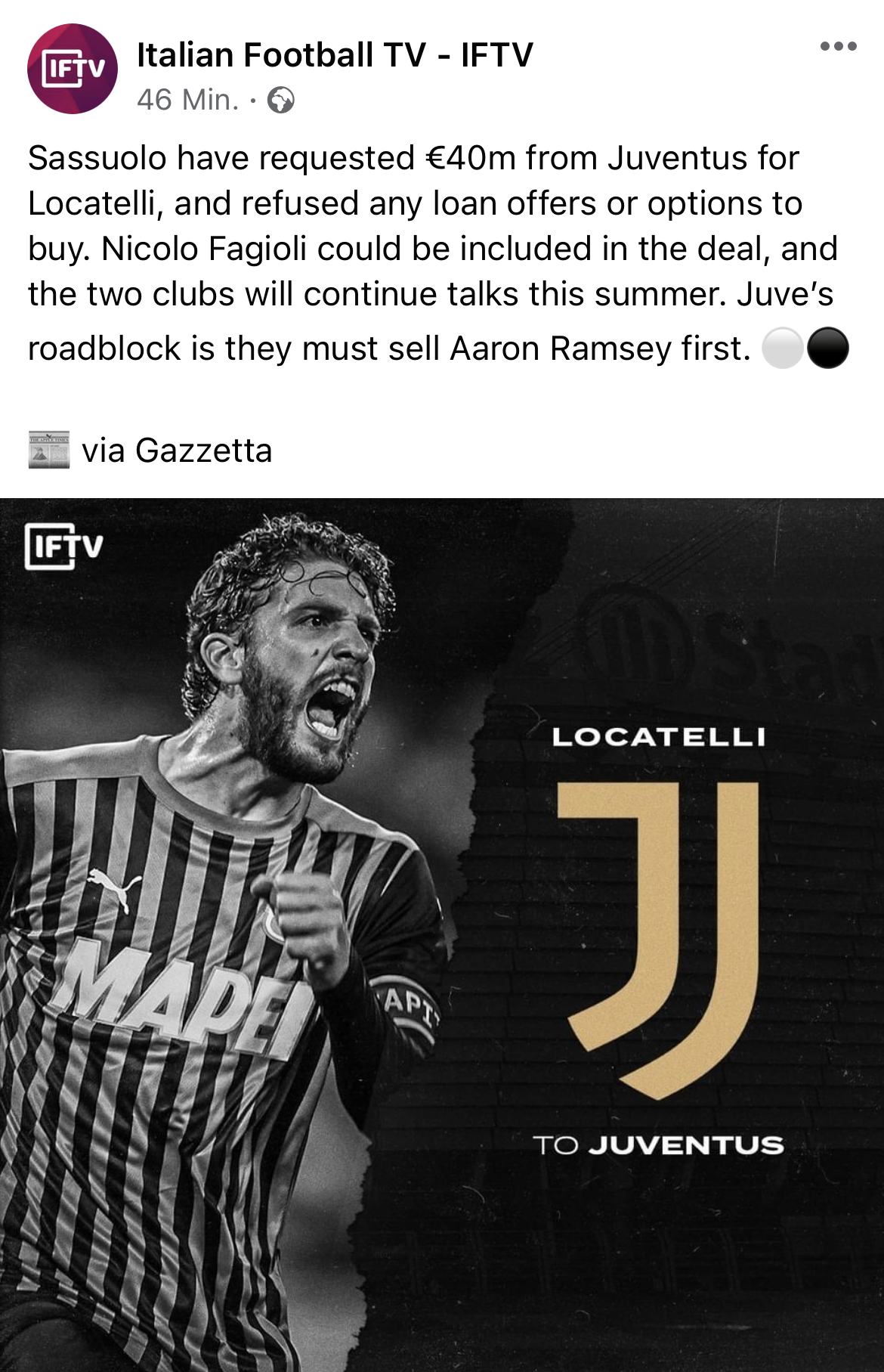 Also Locatelli wäre schon eine gute Wahl im Sommer, zumal er laut Medien ja unbedingt von Pirlo trainiert werden möchte.