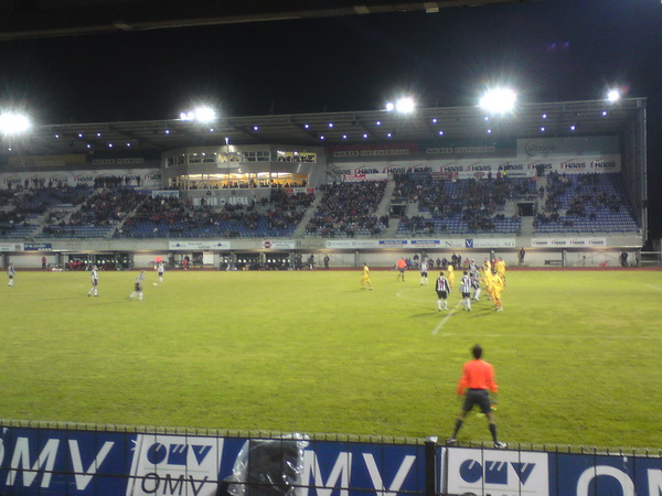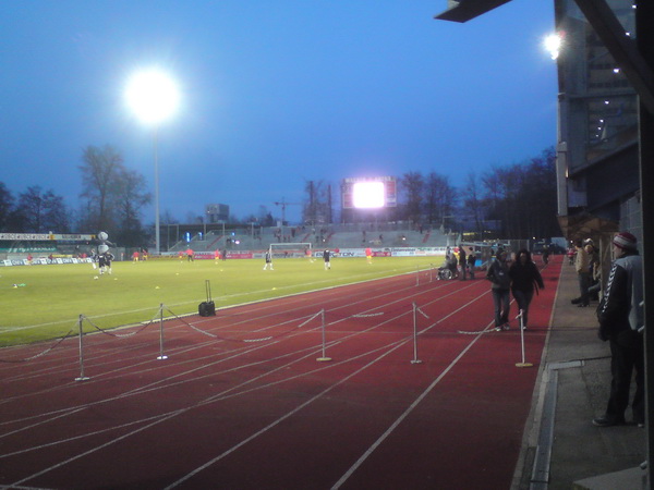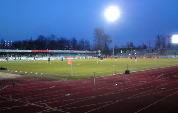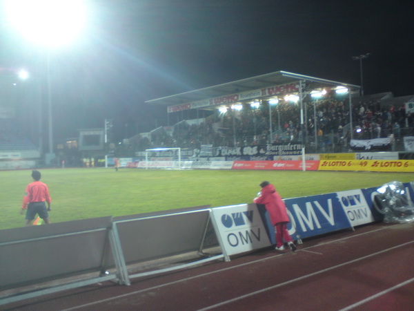 Auswärtsspiel Macht das Flutlicht an! Posted March 18, 2009 (edited) Im Nachtragsspiel des 23. Spieltages empfing der SV Wacker Burghausen vor lediglich 2.650 Zuschauern den seit 11 Spieltagen ungeschlagenen und somit souveränen Tabellenführer aus Berlin. In einem nur wenig ansehnlichen Spiel kam es zu einem schlappen 0:0, wobei der Schiedsrichter auch einen kleinen Anteil daran hatte und in 2 heiklen Situation die Pfeife zugunsten der Gastgeber verstummen ließ. Akustisch wussten die Burghauser durchaus zu gefallen, von den ca. 250 mitgereisten Berlinern (keine schlechte Zahl für ein Spiel quer durch ganz Deutschland unter der Woche) hatte ich mir stimmungsmäßig jedoch etwas mehr erwartet... Leider sind''s nur Handyfotos geworden, der eine oder andere findet sie vl. dennoch interessant: Edited March 18, 2009 by Auswärtsspiel 0 Quote Share this post Link to post Share on other sites More sharing options...