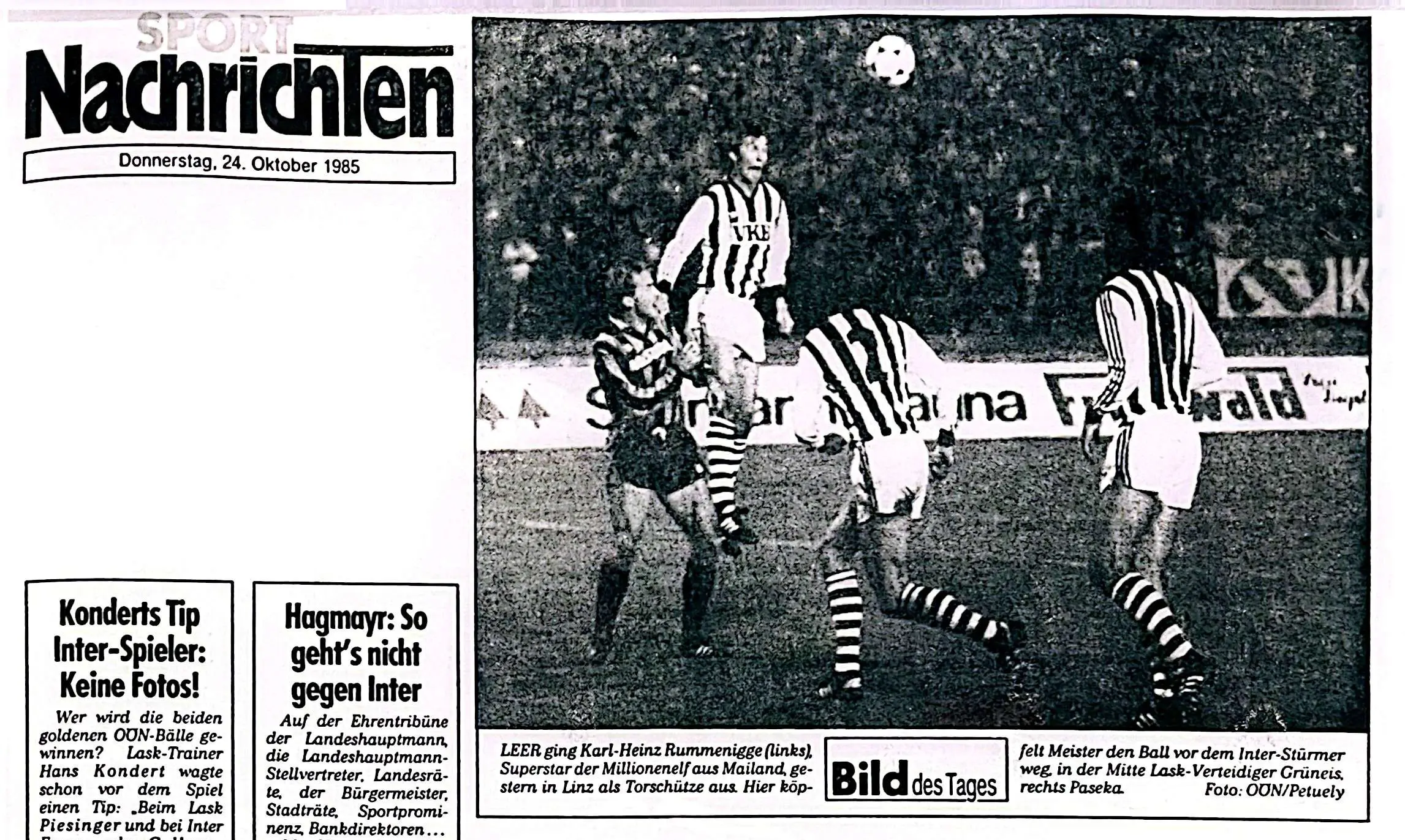 Bohemian Flexer schwarz auf weiß Geschrieben 23. Oktober Zitat ALS DER LASK ZUR „SENSATION VON EUROPA“ AVANCIERTE „Gröss, Gröss – Toooor! Na, ist das schön, ist das nicht schön!“ – der legendäre Siegtreffer von Hans Gröss zum historischen 1:0-Erfolg des LASK gegen Inter Mailand ließ auch ORF-Kommentator Michael Kuhn nicht kalt. Im Linzer Stadion steppte der Bär, das Spiel gegen die damalige Starauswahl des italienischen Spitzenklubs ging in die Geschichte ein. Heute jährt sich der Hinspiel-Erfolg der zweiten UEFA-Cup-Runde 1985 zum 40. Mal. https://www.lask.at/de/m/news/als-der-lask-zur-sensation-von-europa-avancierte 3 Zitieren Diesen Beitrag teilen Link zum Beitrag Auf anderen Seiten teilen More sharing options...