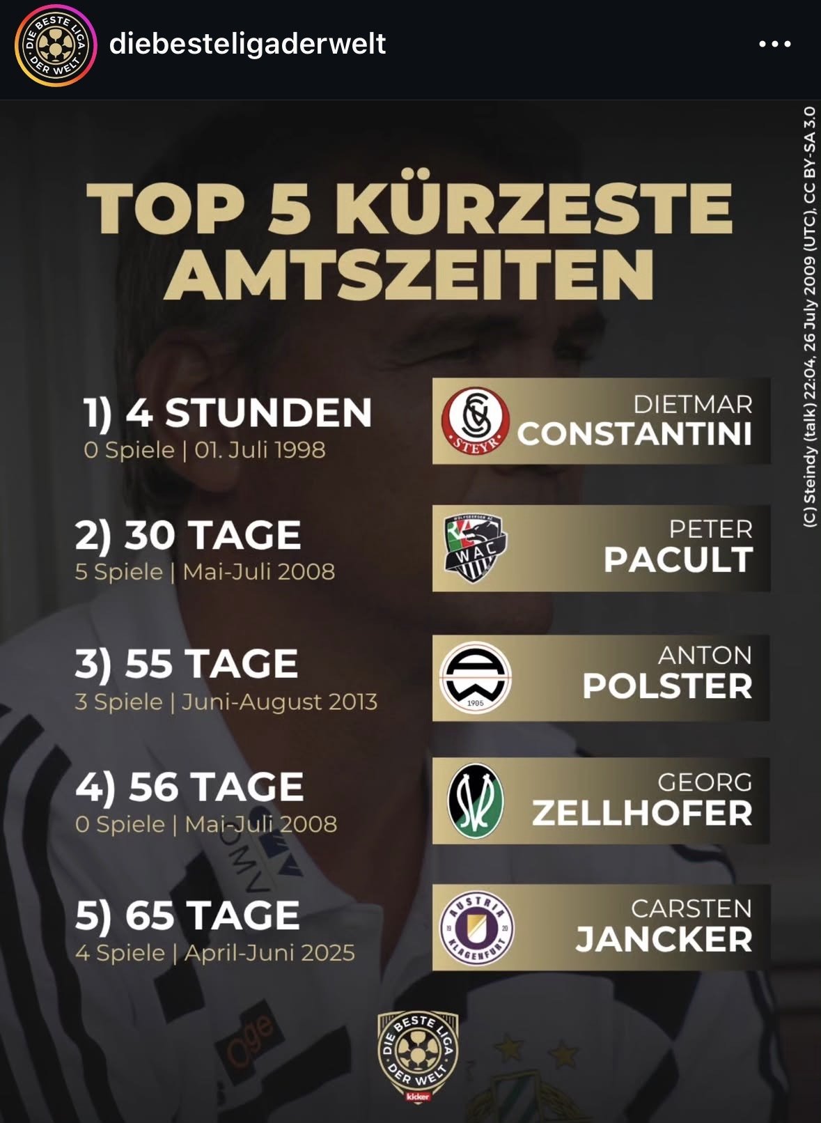 siems Spitzenspieler Geschrieben vor 5 Stunden hariASK schrieb vor einer Stunde: Das erstaunliche an der Statistik ist, dass der LASK nicht vorkommt. Im April 2024 war eh Maximilian Ritscher für ein oder zwei Tage offiziell Trainer, bevor dann Darasz genannt wurde. Deshalb gabs ja sogar die Lizenz im ersten Anlauf nicht. Also der LASK hat sich einen Platz in dieser Statistik auf jeden Fall verdient! 0 Zitieren Diesen Beitrag teilen Link zum Beitrag Auf anderen Seiten teilen More sharing options...