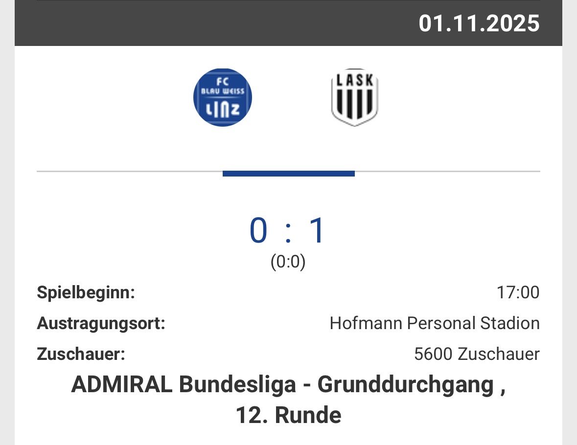 Habe kurz vor Spielbeginn im ticketshop von blau wer geschaut, gab noch Stehplatz Karten. Aber eh egal, am sitzer war sowieso wieder ein Großteil gleichzeitig am Klo