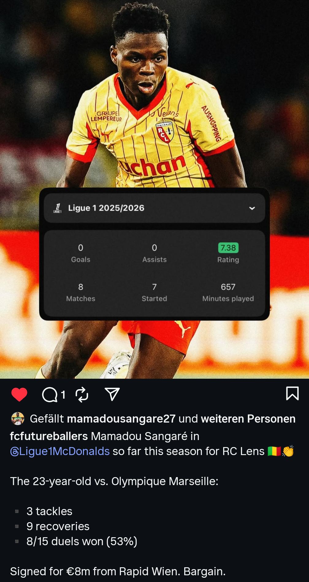 Patrick1899 Europaklassespieler Geschrieben vor 2 Stunden (bearbeitet) Und Sangare ist mit Lens nun auch Tabellenzweiter hinter PSG bearbeitet vor 2 Stunden von Patrick1899 1 Zitieren Diesen Beitrag teilen Link zum Beitrag Auf anderen Seiten teilen More sharing options...