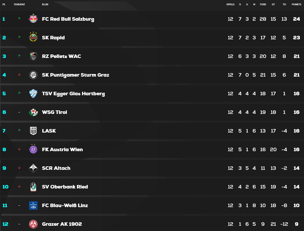raumplaner Vi besvarer din forespørgsel hurtigst muligt. Geschrieben Gestern um 00:05 Gatiii schrieb vor 2 Stunden: Stell dir mal vor wir hätten gegen Wattens nicht gewonnen, was nicht so weit weg war und müssten dann nach Linz fahren. Dann sind wir voll in der Verlosung, obwohl wir a starke Saison spielen. Diese emotionale Achterbahn musst erst mal als Mannschaft verkraften. Gute Saison / Abstiegskampf... Oder als umgekehrtes Beispiel Rapid spielen a scheiß Saison inkl. Trainerwechsel jetzt fast 1er. dass der bewerb seine tücken hat - noch dazu, wenn alles so eng beisammen liegt - ist klar. aber wir haben beispielsweise das direkte duell gegen rapid verloren. sie haben auch davon unabhängig mehr punkte geholt als wir. dass wir also eine gute saison spielen, rapid aber eine scheiß saison, geben die zahlen objektiv nicht her. dass wir über wert spielen, rapid unter wert - ja klar. aber in der liga gibt's keine wertung, wer aus den geringsten mittel das meiste herausholt. es ist halt ein modus, der aus zwei teilen besteht. das ist im fußball keineswegs ungewöhnlich, dass der modus wechselt im laufe einer saison. jede EM, WM, jeder europacupbewerb hat verschiedene phasen. man kann als gruppendritter europameister werden und man kann die gruppe dominieren und im achtelfinale scheitern. so hat übrigens die tabelle nach 12 runden ausgesehen: wer hätte da gedacht, dass rapid noch zittern muss, wer hätte gedacht, dass sowohl bw linz als auch wolfsberg in 11 weiteren spielen jeweils nur mehr einen sieg und 2 unentschieden holen. während wir seither eine bilanz von 5-2-4 erreicht haben. so pauschale aussagen, dass irgendwer eine gute saison spielt und irgendwer eine scheiß saison fällt bei einem blick auf die aktuelle tabelle im vergleich zu der nach 12 runden (immerhin mehr als ein drittel der gesamten spielzeit, mehr als 50% der bislang gespielten runden) schon ziemlich schwer. die schwankungen sind beachtlich. 7 Zitieren Diesen Beitrag teilen Link zum Beitrag Auf anderen Seiten teilen More sharing options...